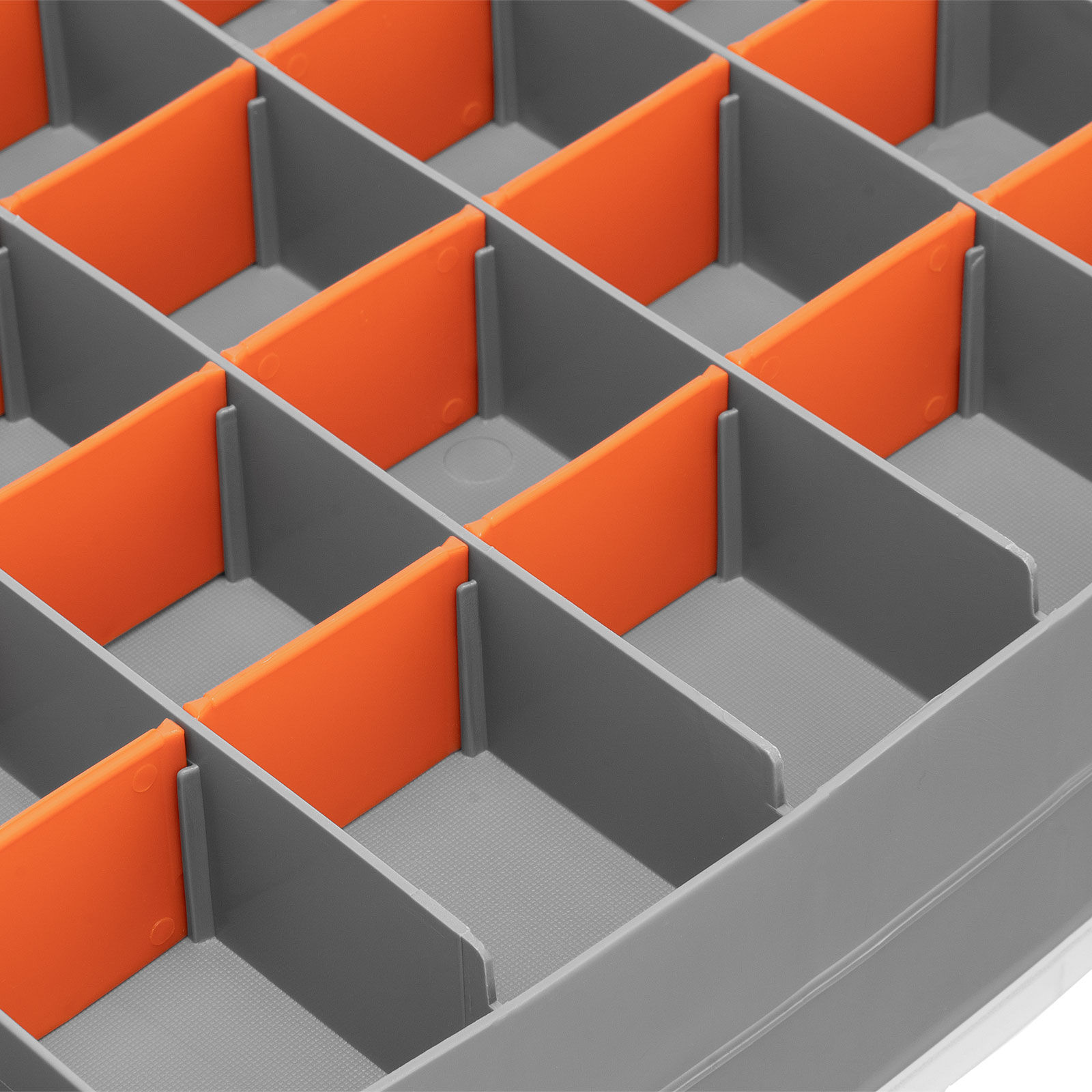 - Органайзер имеет 84 секции, поэтому вмещает большое количество деталей.