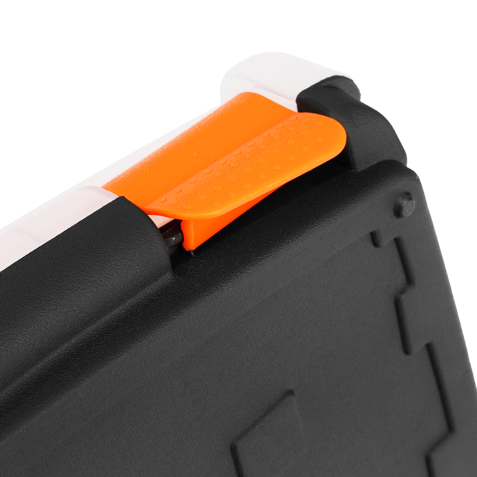 - Защелки и ручка обеспечивают удобство транспортировки органайзера.