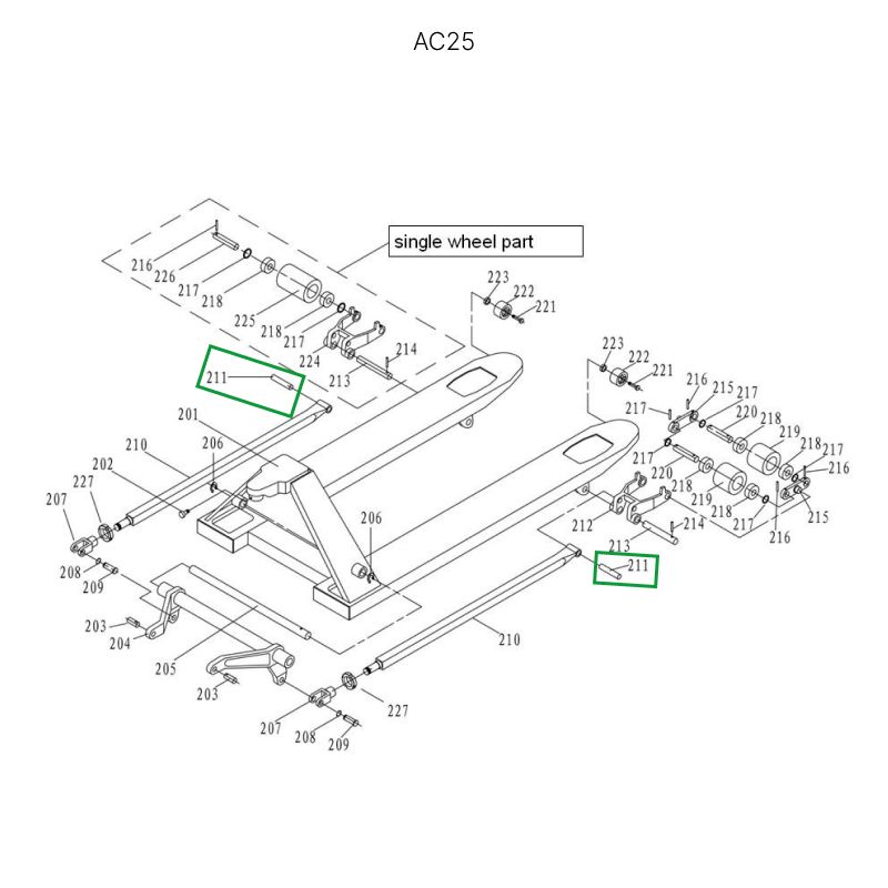 Ось крепления рычага силового блока к подвильной тяге для гидравлических тележек AC25 в Санкт-Петербурге