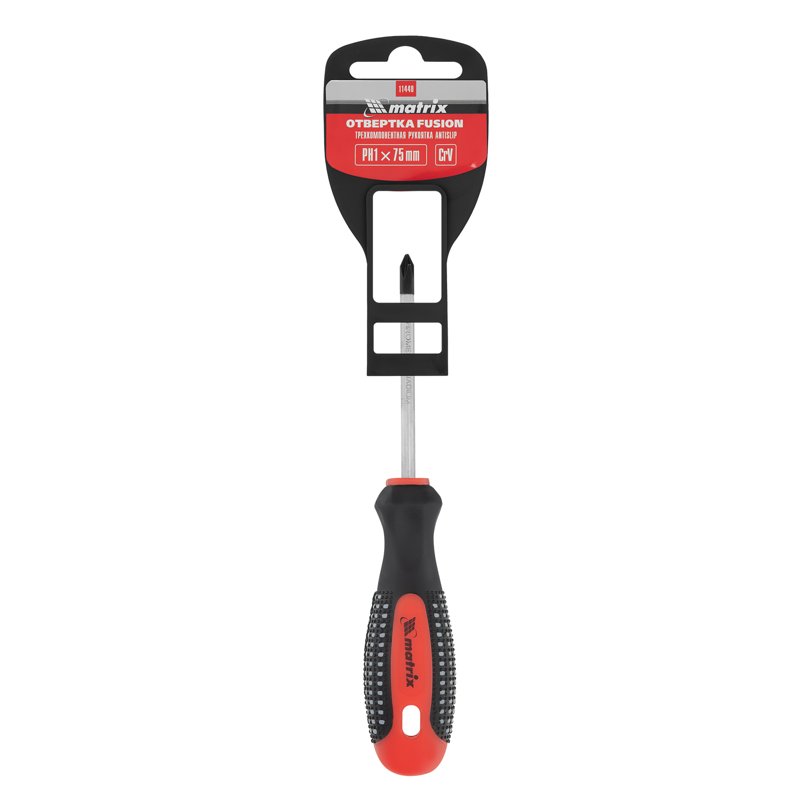 Отвертка Fusion, PH1 х 75 мм, CrV, трехкомпонентная рукоятка "Anti slip" Matrix в Санкт-Петербурге
