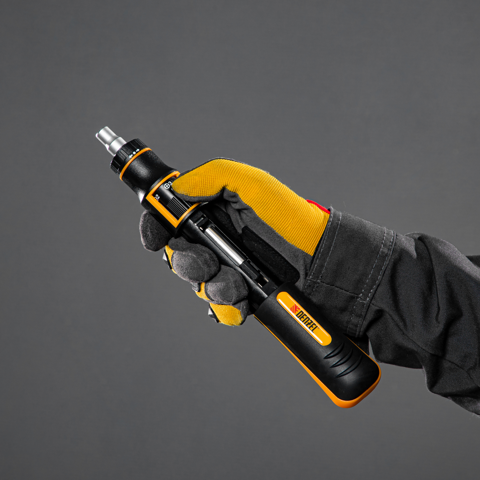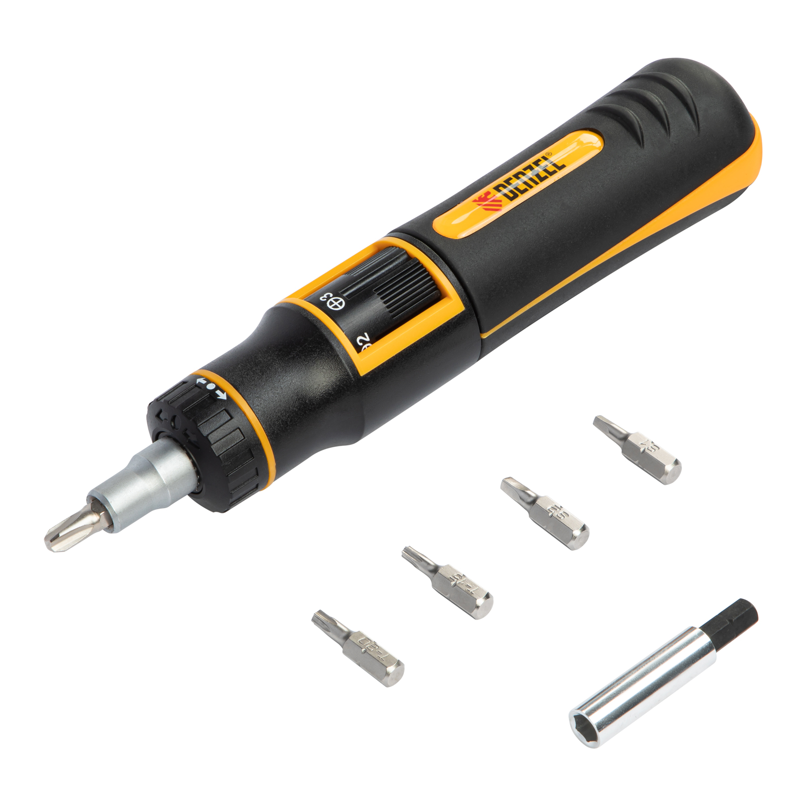 Отвертка реверсивная с револьверным механизмом, 11 шт, сталь S2 Denzel