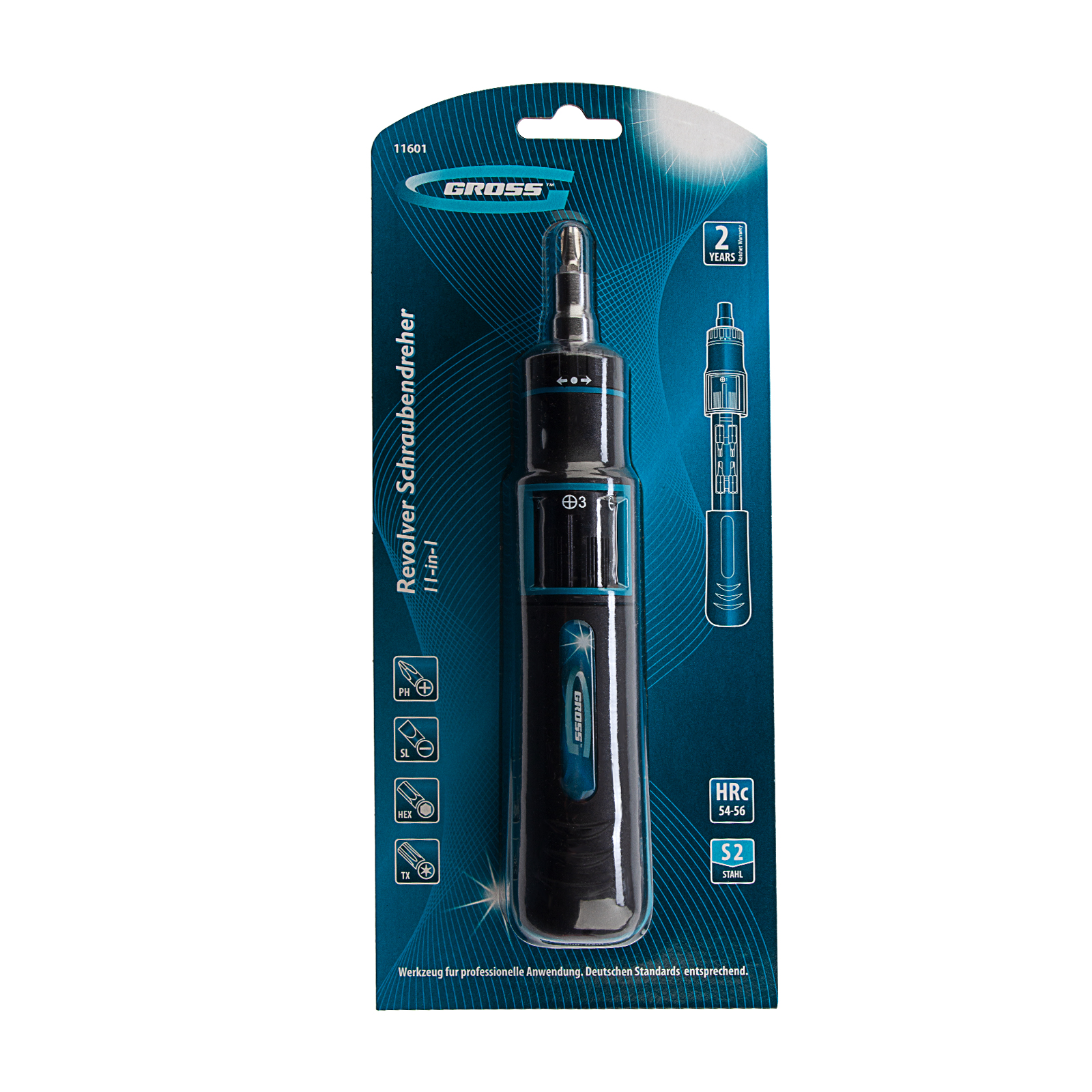 Отвертка реверсивная с револьверным механизмом, 11 шт, сталь S2 Gross
