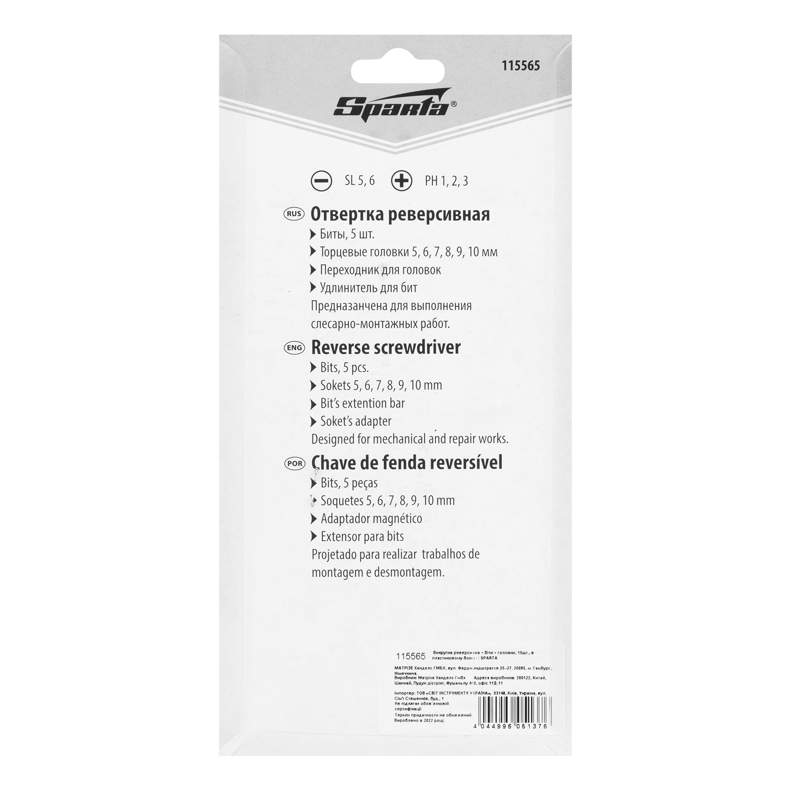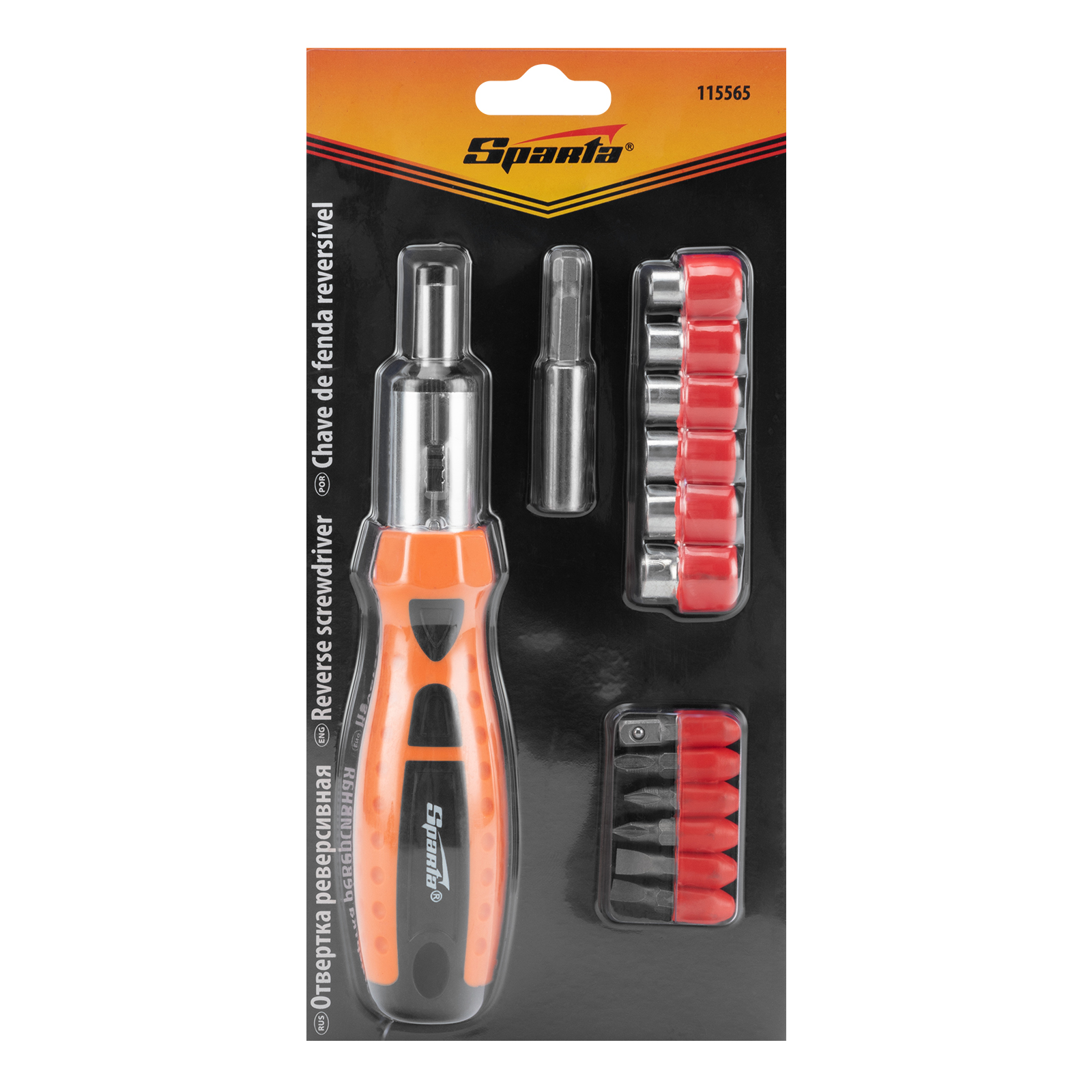 Отвертка реверсивная, биты, головки торцевые, 14 шт, Sparta