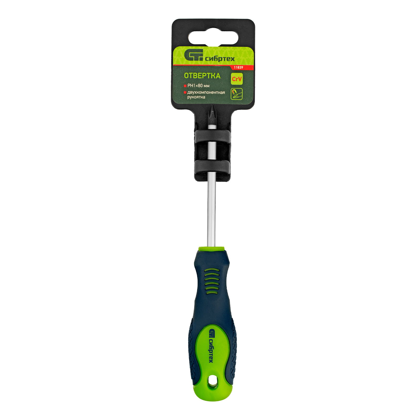 Отвертка, PH1 х 80 мм, CrV, двухкомпонентная рукоятка Сибртех