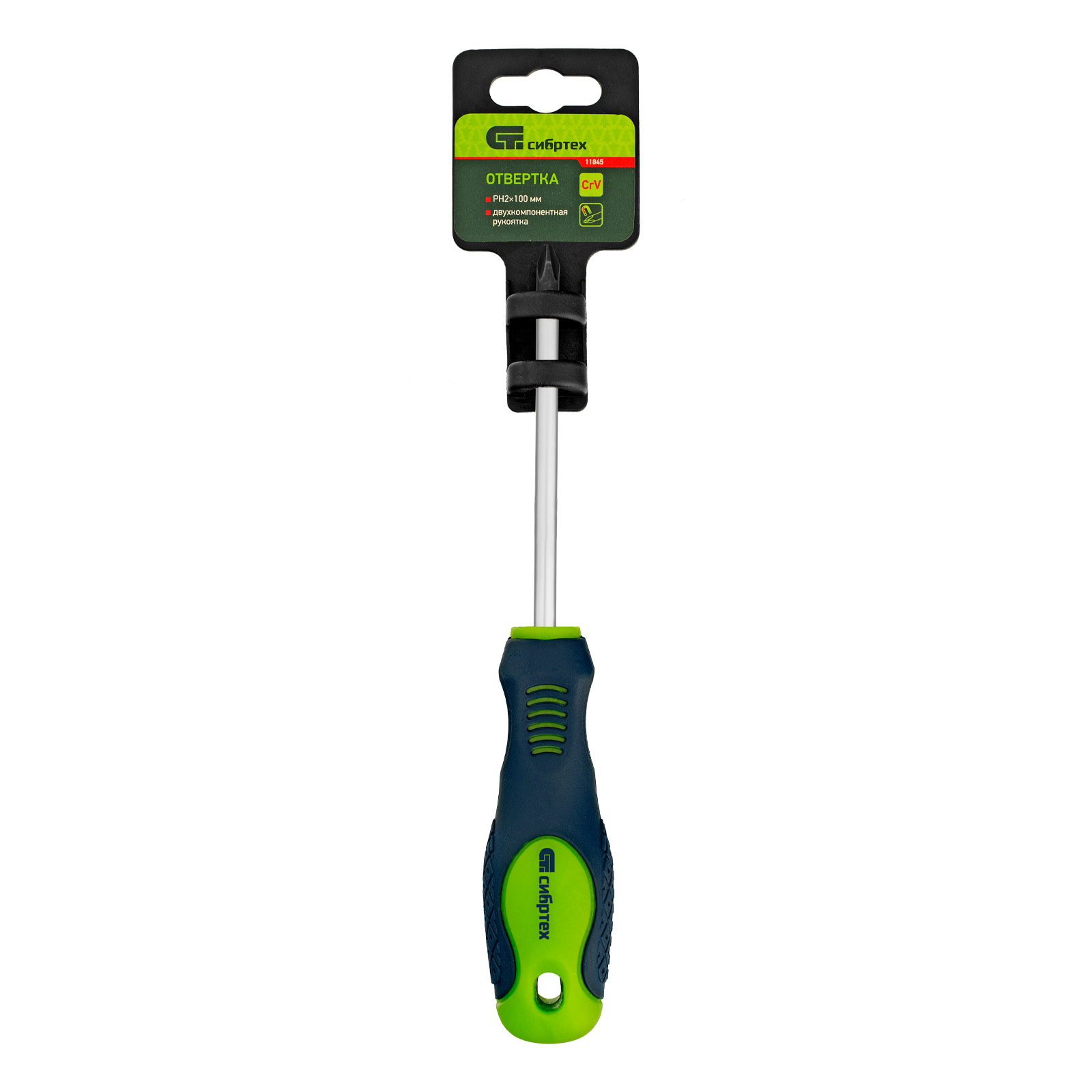 Отвертка, PH2 х 100 мм, CrV, двухкомпонентная рукоятка Сибртех в Санкт-Петербурге