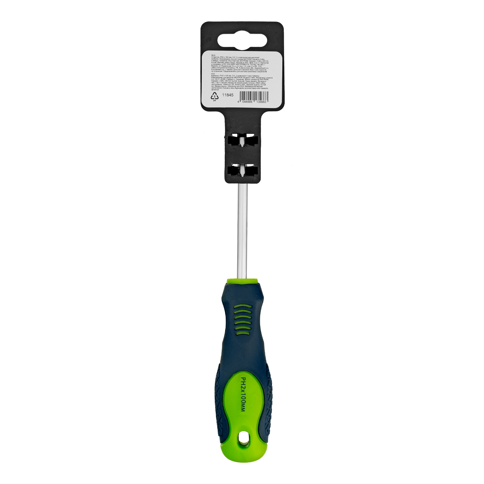 Отвертка Сибртех 11845 типоразмера PH2 х 100 мм, из стали CrV, с двухкомпонентной рукояткой и крестовым шлицем, позволяет проводить монтаж/демонтаж крепежных элементов типа Phillips. Подходит для работы в углублениях. Полупрофессиональная отвертка поможет отремонтировать бытовую технику, повесить полки, собрать мебель и выполнить другие работы.