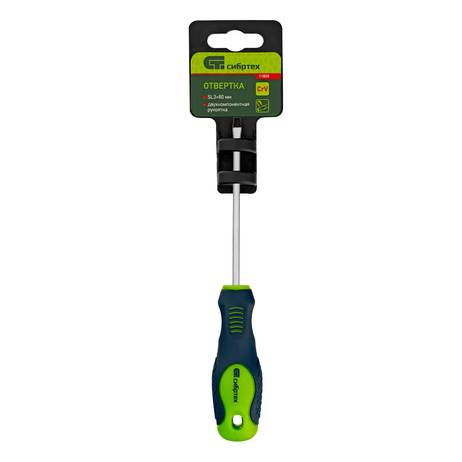Отвертка, SL3 х 80 мм, CrV, двухкомпонентная рукоятка Сибртех