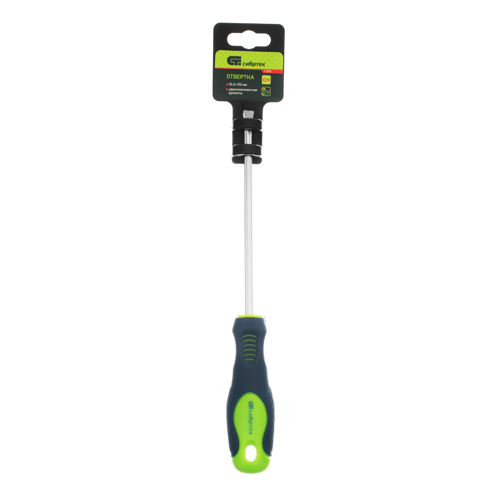 Отвертка, SL6 х 150 мм, CrV, двухкомпонентная рукоятка Сибртех в Санкт-Петербурге