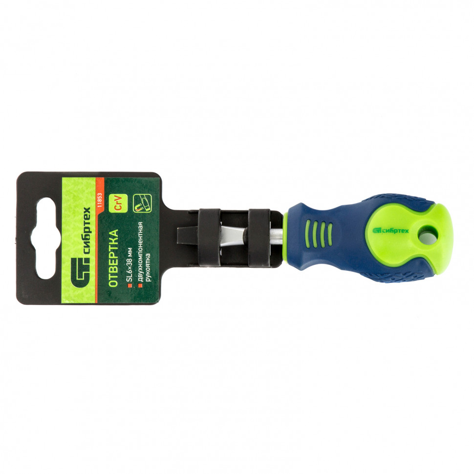 Отвертка, SL6 х 38 мм, CrV, двухкомпонентная рукоятка Сибртех