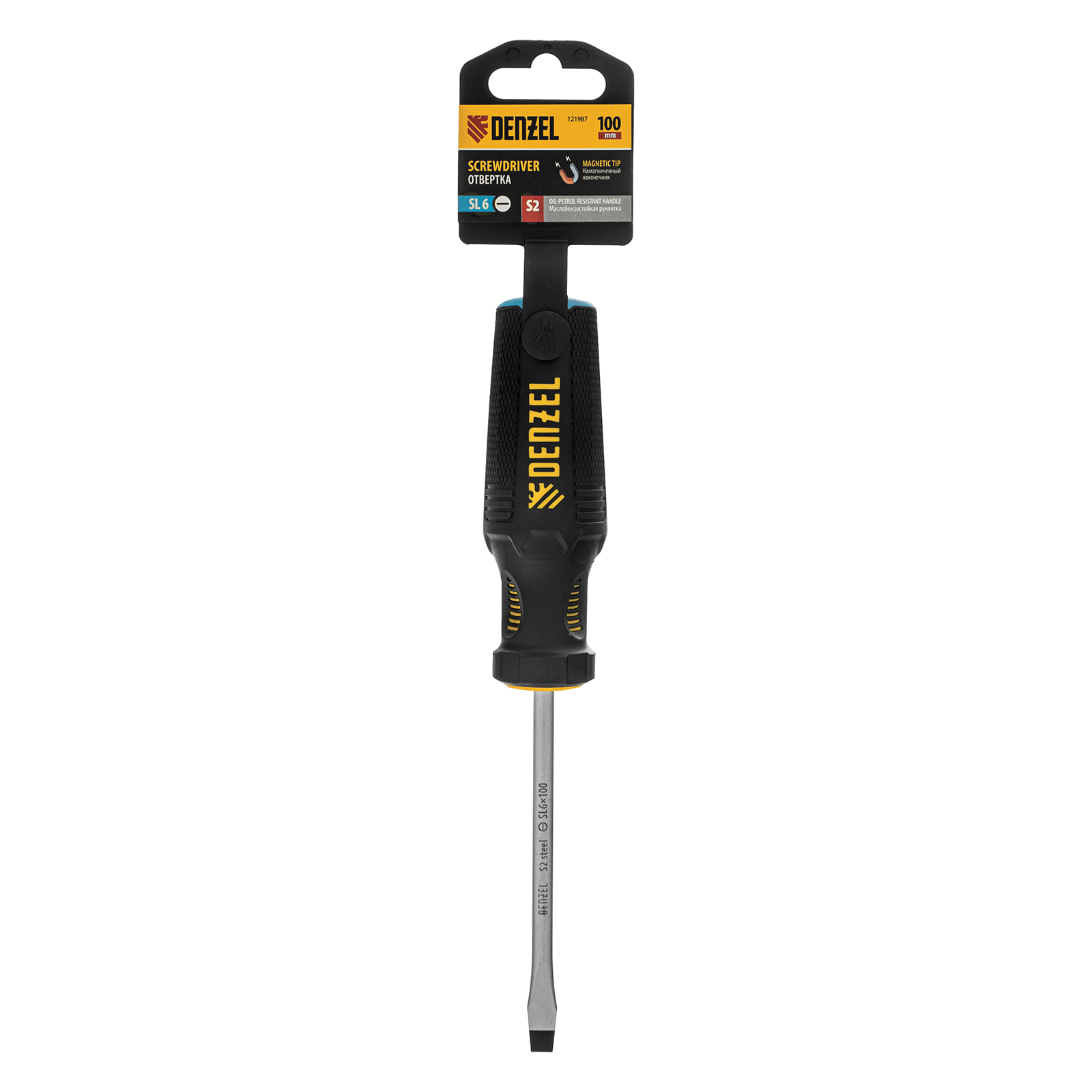 Отвертка, SL6x100 мм, S2, 3к рукоятка Denzel в Санкт-Петербурге