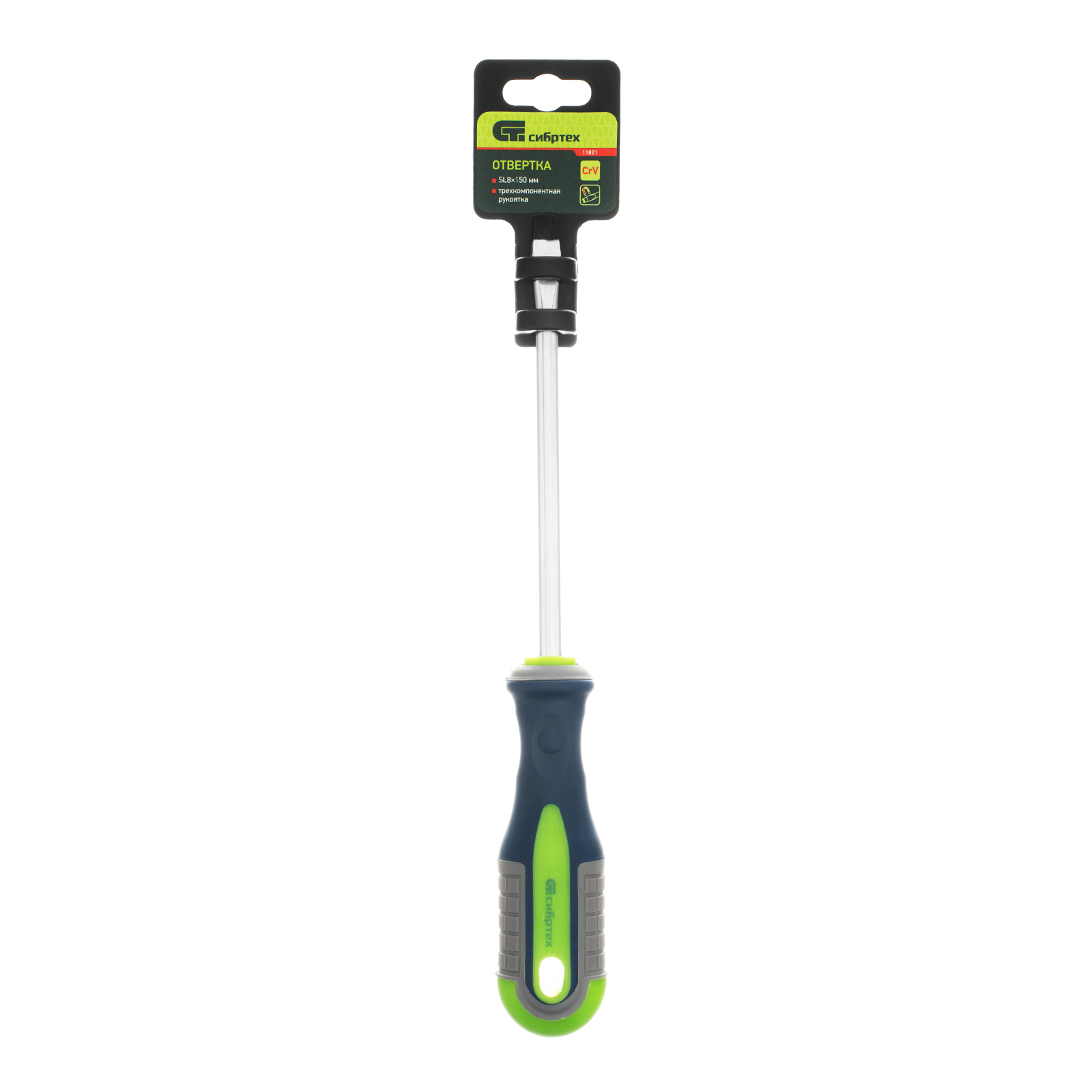 Отвертка, SL8 х 150 мм, CrV, трехкомпонентная рукоятка Сибртех