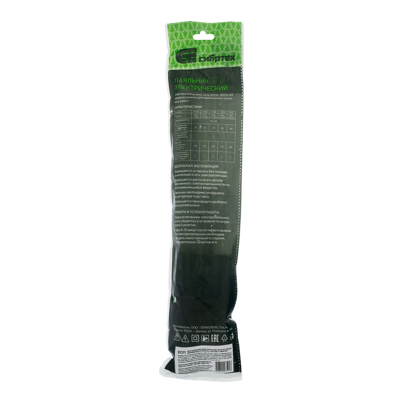 Электрический паяльник Сибртех ЭПСН-03-100/220 91311 с деревянной ручкой используется для пайки электросхем, проводов, небольших деталей. Мощность инструмента составляет 100 Вт, поэтому он успешно справляется с поставленными задачами. Паяльник используют для ремонта бытовой и радиотехники, а также во время обслуживания автомобилей.