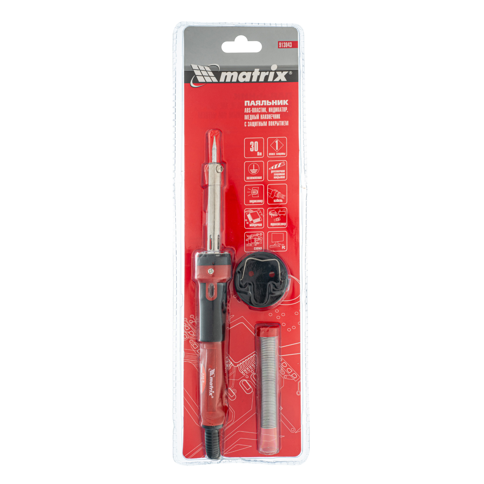 Паяльник, пластик ABS, класс защиты 1, индикатор, медный наконечник с долговечным покрытием, 220 В, 30 W Matrix