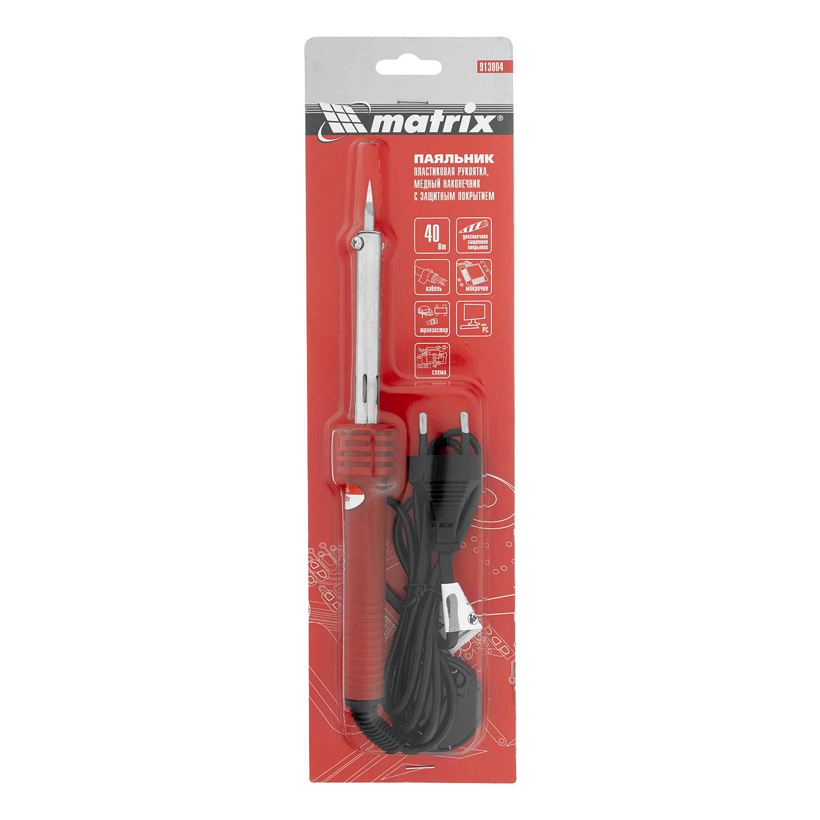 Паяльник, пластиковая рукоятка, медный наконечник с долговечным защитным покрытием, 220 В, 40 W Matrix