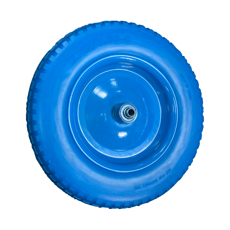 Грузоподъемность данного пенополиуретанового колеса составляет 150 кг, диаметр — 350 мм. Модель не требует подкачки и дополнительного обслуживания, не подвержена расслоению, не оставляет следов. Подходит для строительных и садовых тачек.