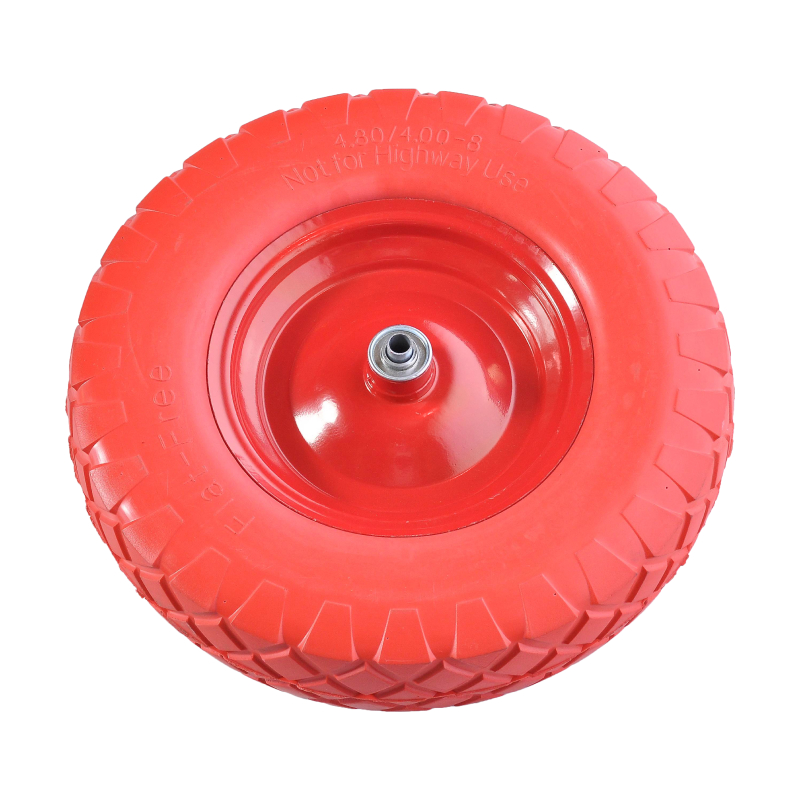 Грузоподъемность данного пенополиуретанового колеса составляет 160 кг, диаметр — 390 мм. Модель не требует подкачки и дополнительного обслуживания, не подвержена расслоению, не оставляет следов. Подходит для строительных и садовых тачек.