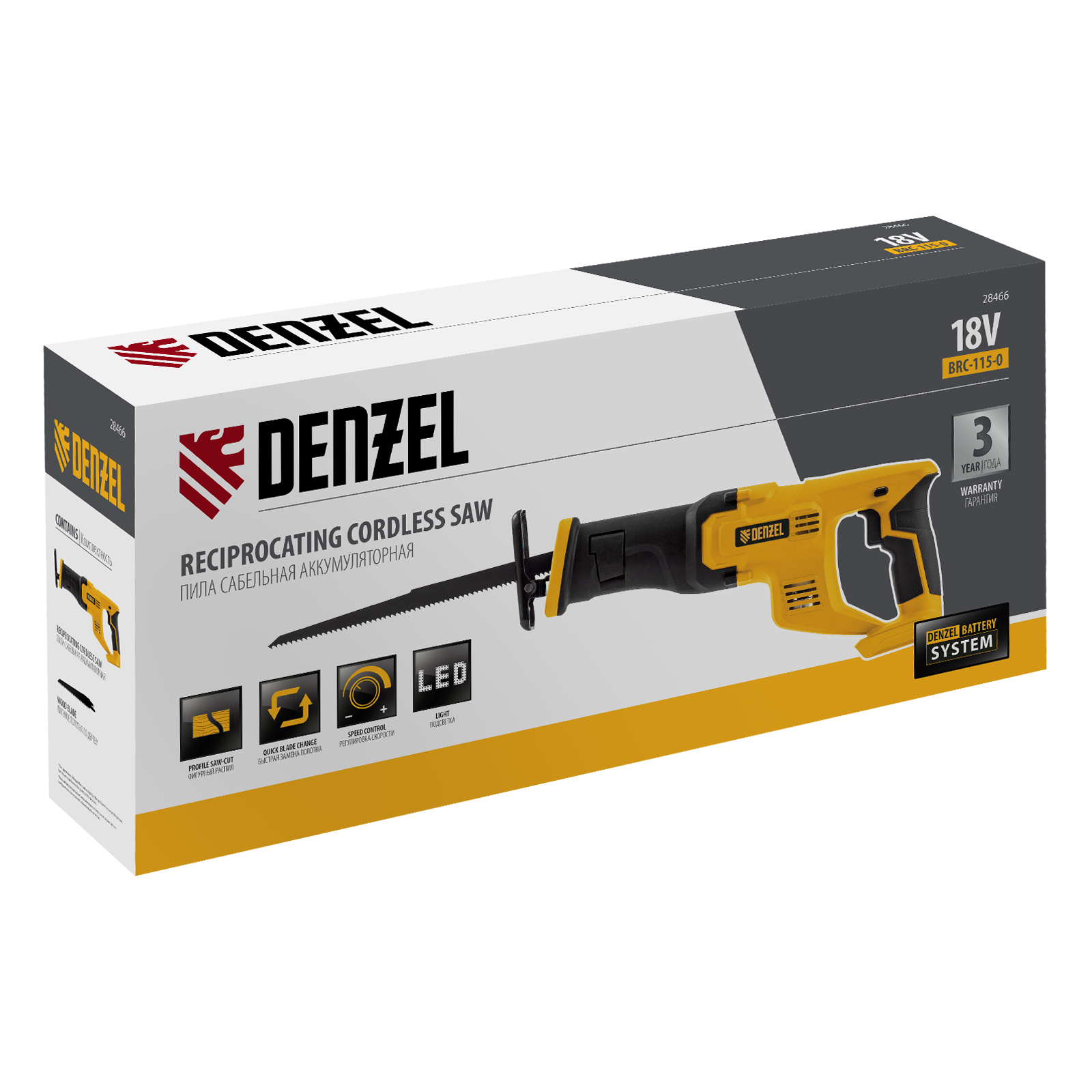 Пила сабельная аккумуляторная CRC-115-0, 18В Li-Ion Denzel