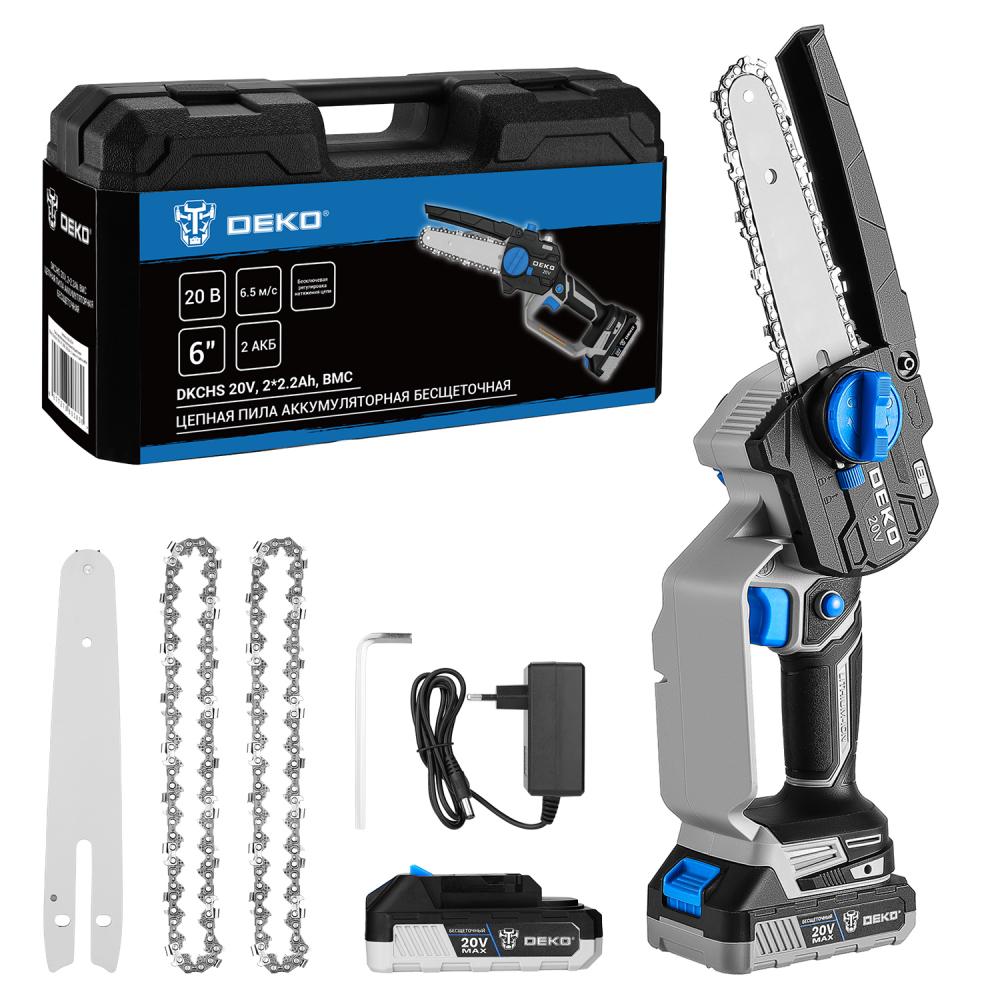 • Пила цепная аккумуляторная бесщеточная DEKO DKCHS 20, 10", 20В, 1x4.0Ач, з/у купить в Москве с доставкой по всей России | ProtosMarket.ru