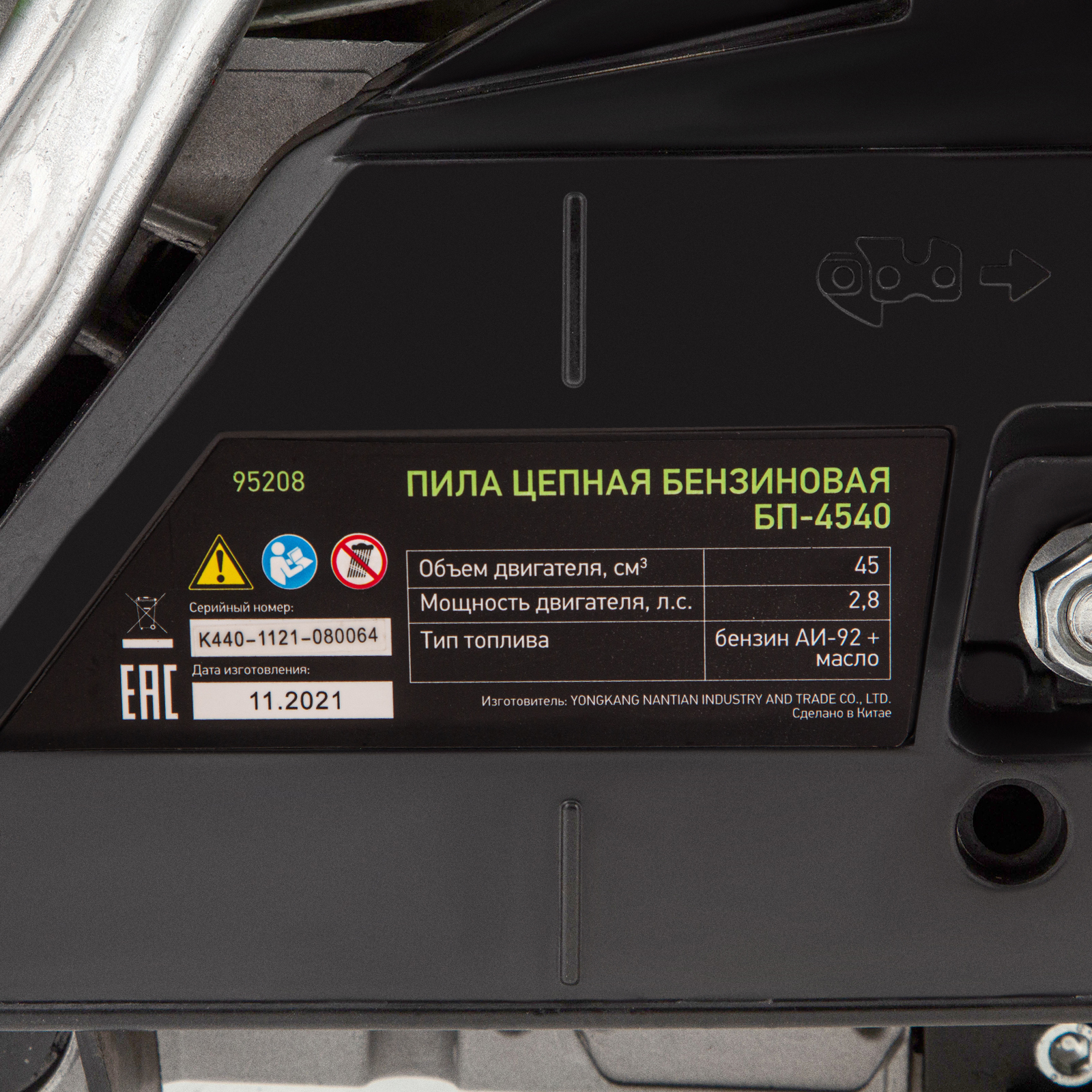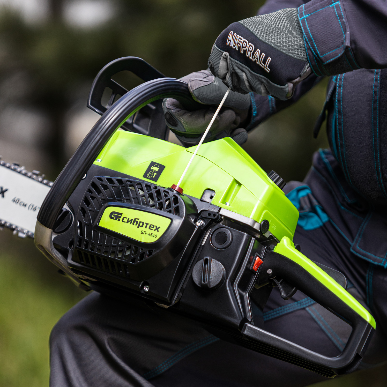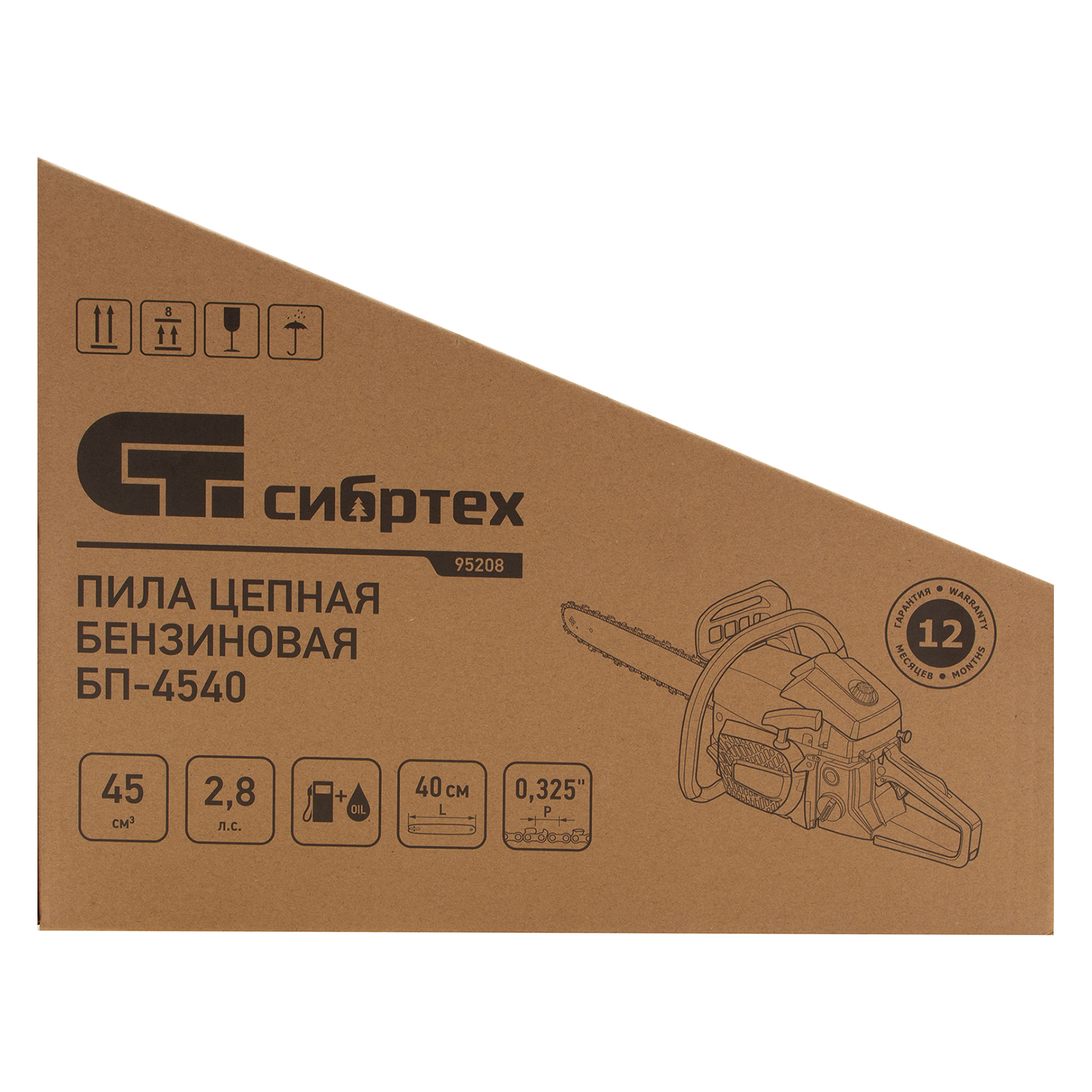 Пила цепная бензиновая БП-4540, 45 см3, шина 40 см, шаг 0.325, паз 1,5 мм, 64 звена Сибртех