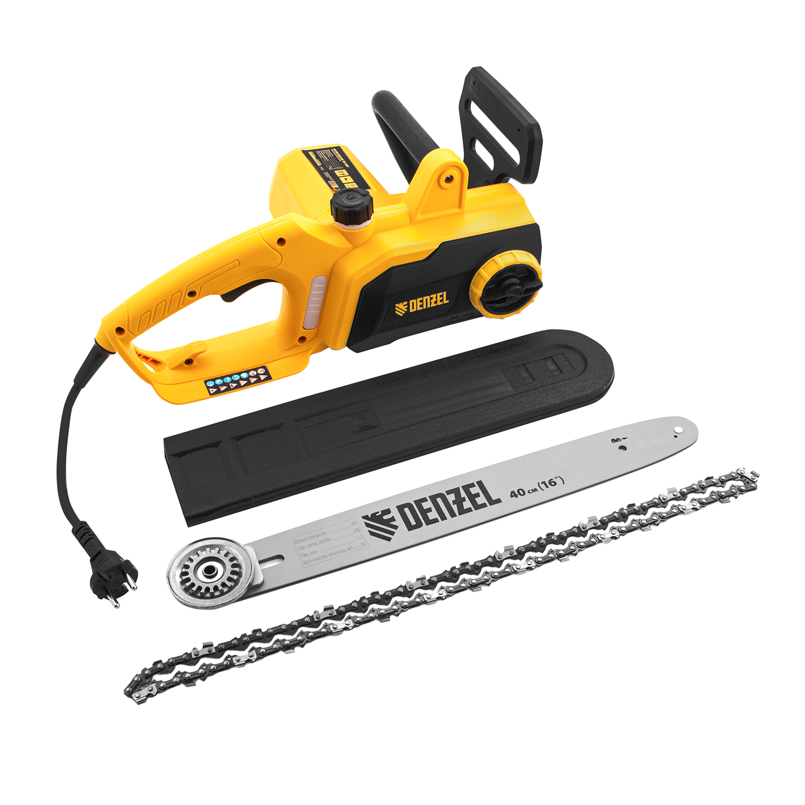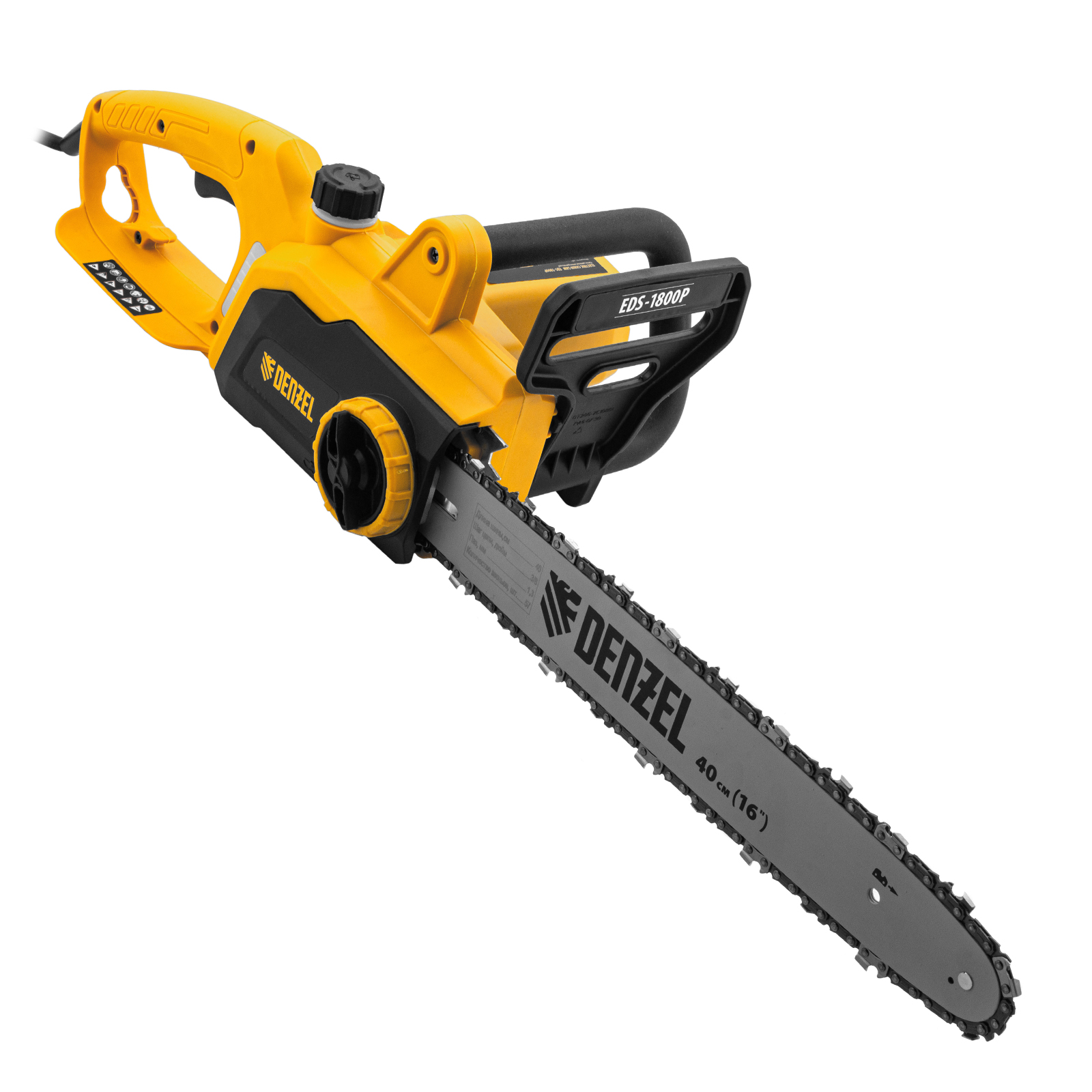 Пила цепная электрическая EDS-1800P, 1.8 кВт,поперечная, шина 40 см, шаг 3/8, паз 1.3 мм, 57 звеньев Denzel