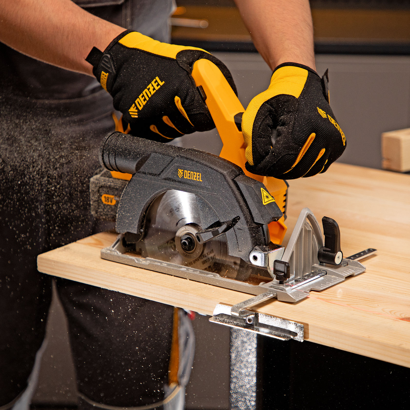 Пила поставляется без АКБ и зарядного устройства, для ее питания подойдет универсальный аккумулятор емкостью 4 А·ч, совместимый с любым инструментом, работающим на единой аккумуляторной платформе Denzel battery system 18V.