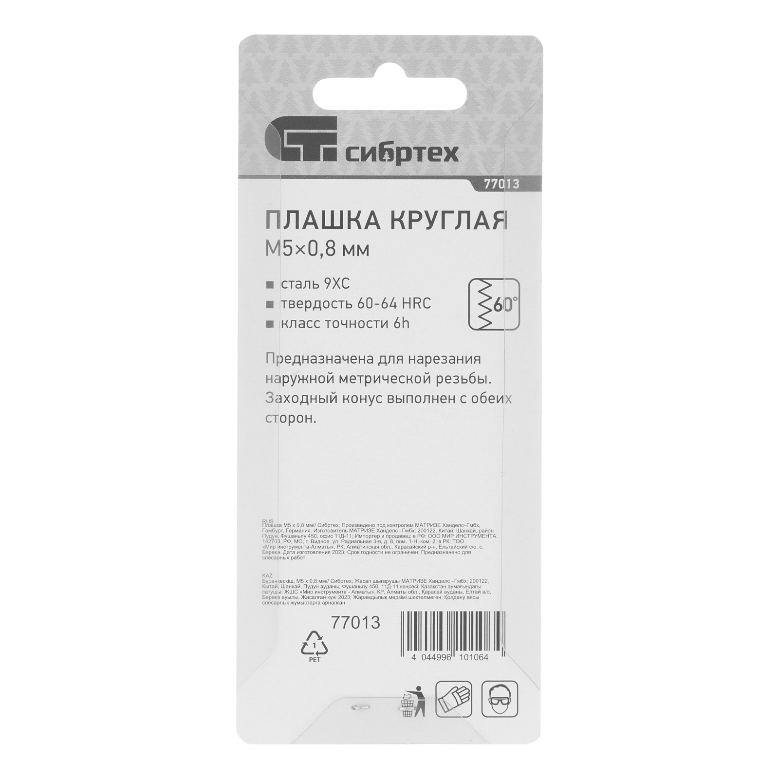 Плашка М5 х 0.8 мм Сибртех