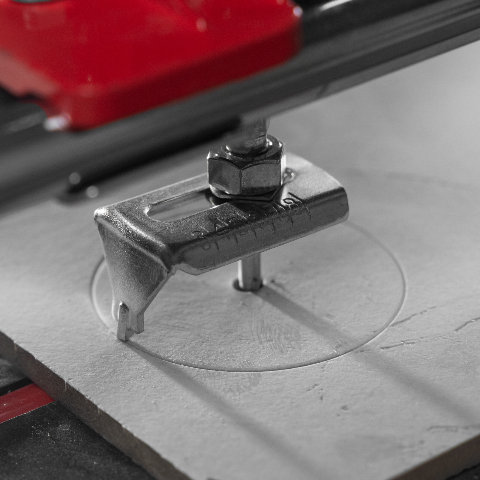- Высокая точность выполняемых работ — поворотный угольник-угломер позволяет резать плитку под углом до 45°.
