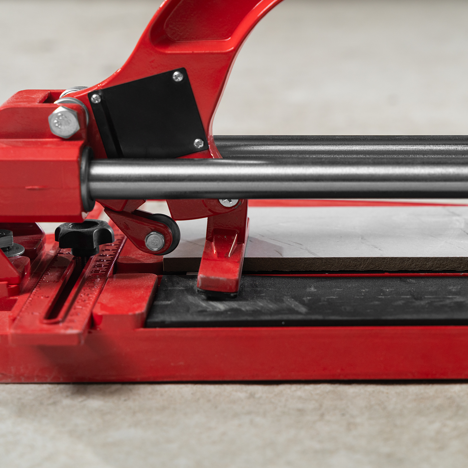 • Плавный и свободный ход — цельнолитая закрытая каретка снабжена шарикоподшипниковым механизмом, две трубчатых направляющих из хромированной стали с антикоррозионным покрытием обеспечивают свободный ход каретки по ним в процессе резки.
