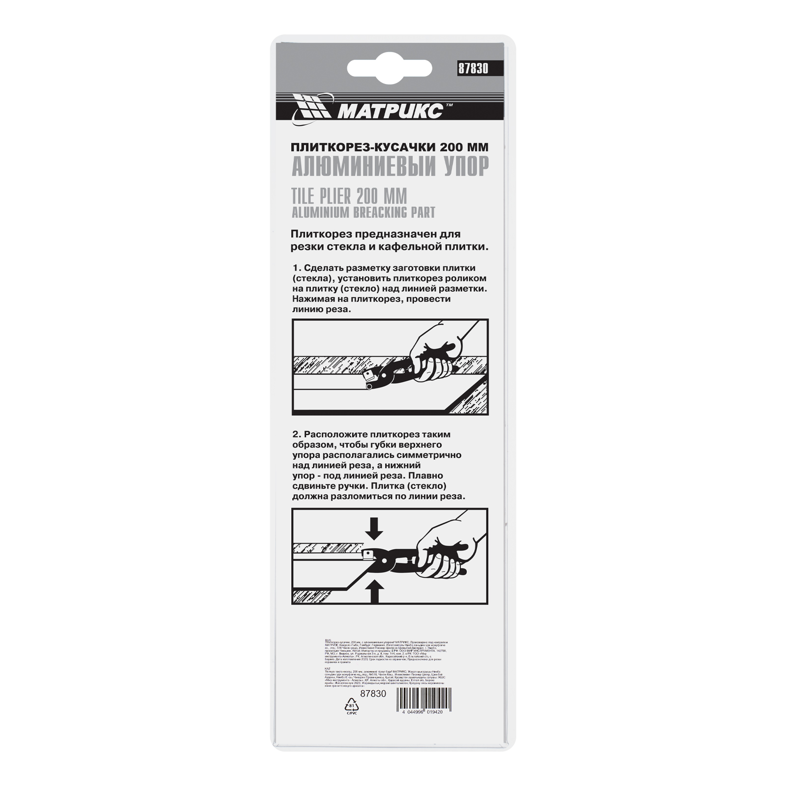 Режущим элементом является ролик из твердого сплава ВК-8, что делает его износостойким и долговечным._Угловой металлический упор способен поворачиваться вдоль оси для создания полного контакта с плиткой любой толщины_Особый угол заточки резца позволяет ровно и без сколов прорезать эмаль_Выполняет прямую и фигурную резку_Легкий, удобный и компактный инструмент для домашнего использования_Не нуждается в дополнительном обслуживании