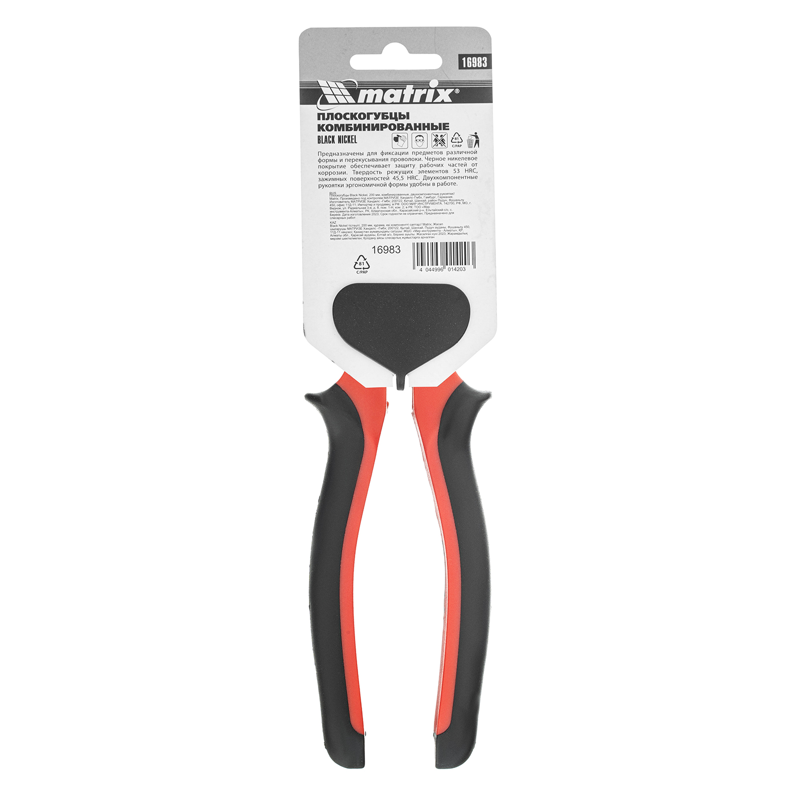 Плоскогубцы комбинированные Black Nickel, 200 мм, двухкомпонентные рукоятки Matrix