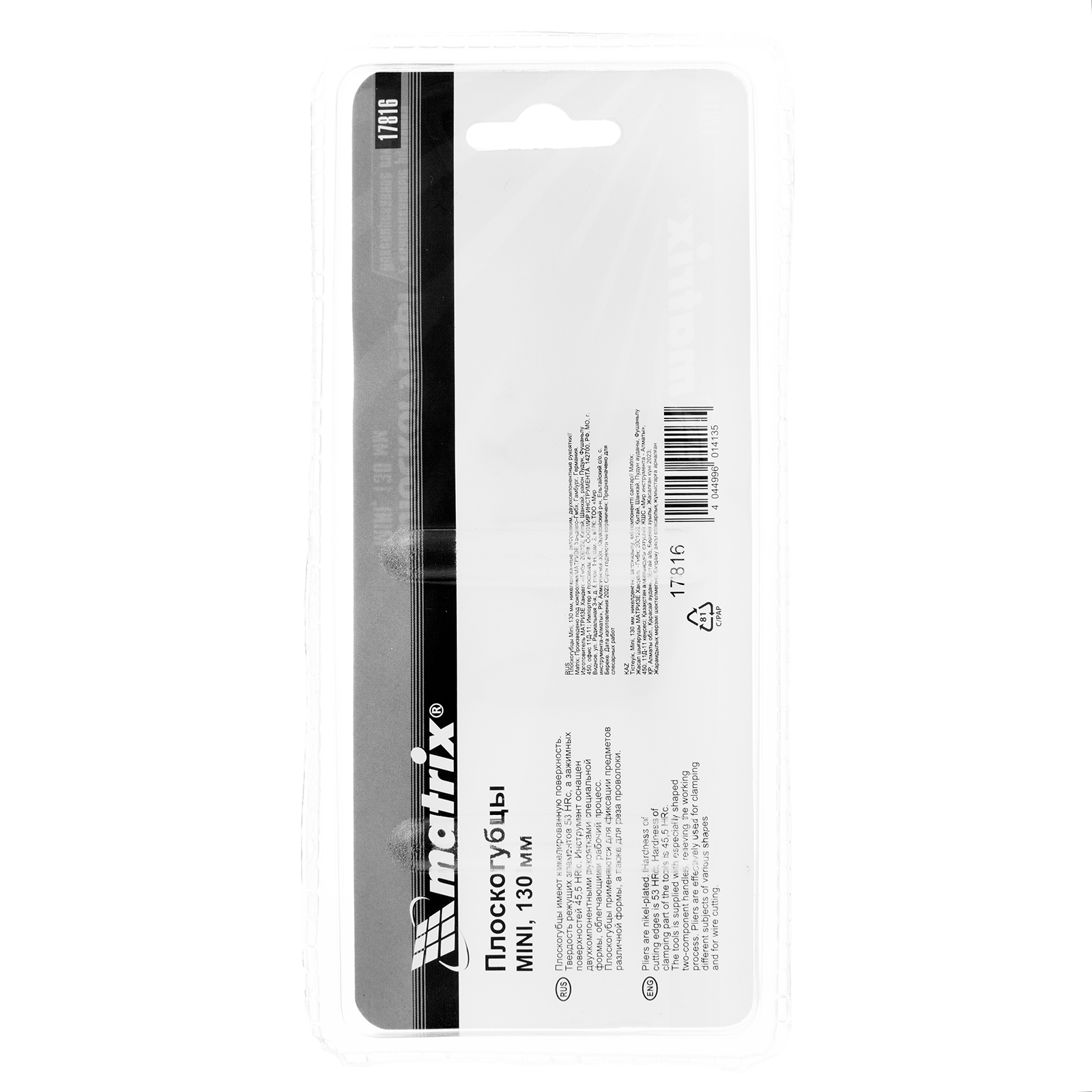 Плоскогубцы Mini, 130 мм, никелированные, авторазжим, двухкомпонентные рукоятки Matrix в Санкт-Петербурге