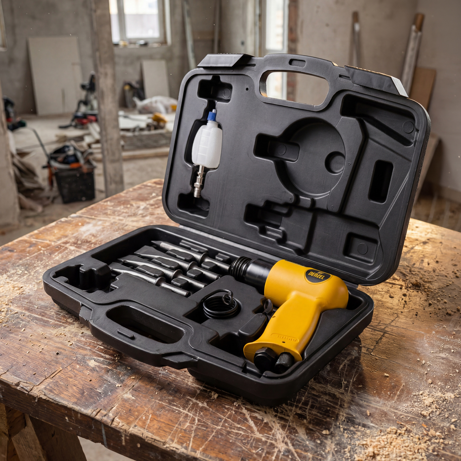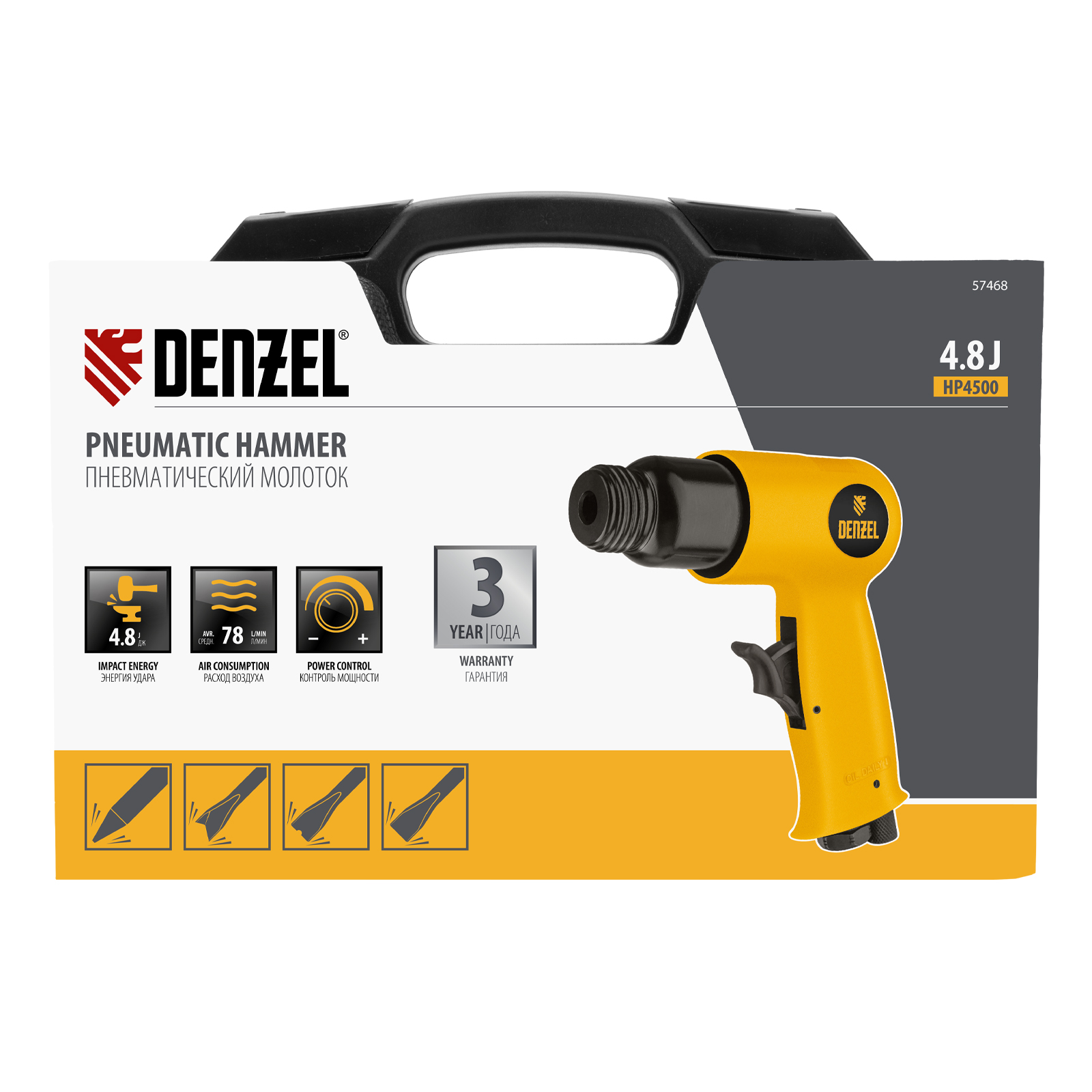 Пневматический молоток НР4500 + набор насадок, 113 л/мин, 4500 уд/мин Denzel в Санкт-Петербурге