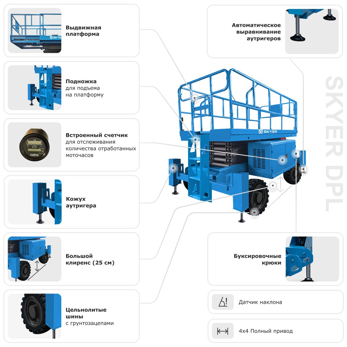 Подъемник самоходный дизельный ножничный с выдвижными платформами SKYER DPL1436