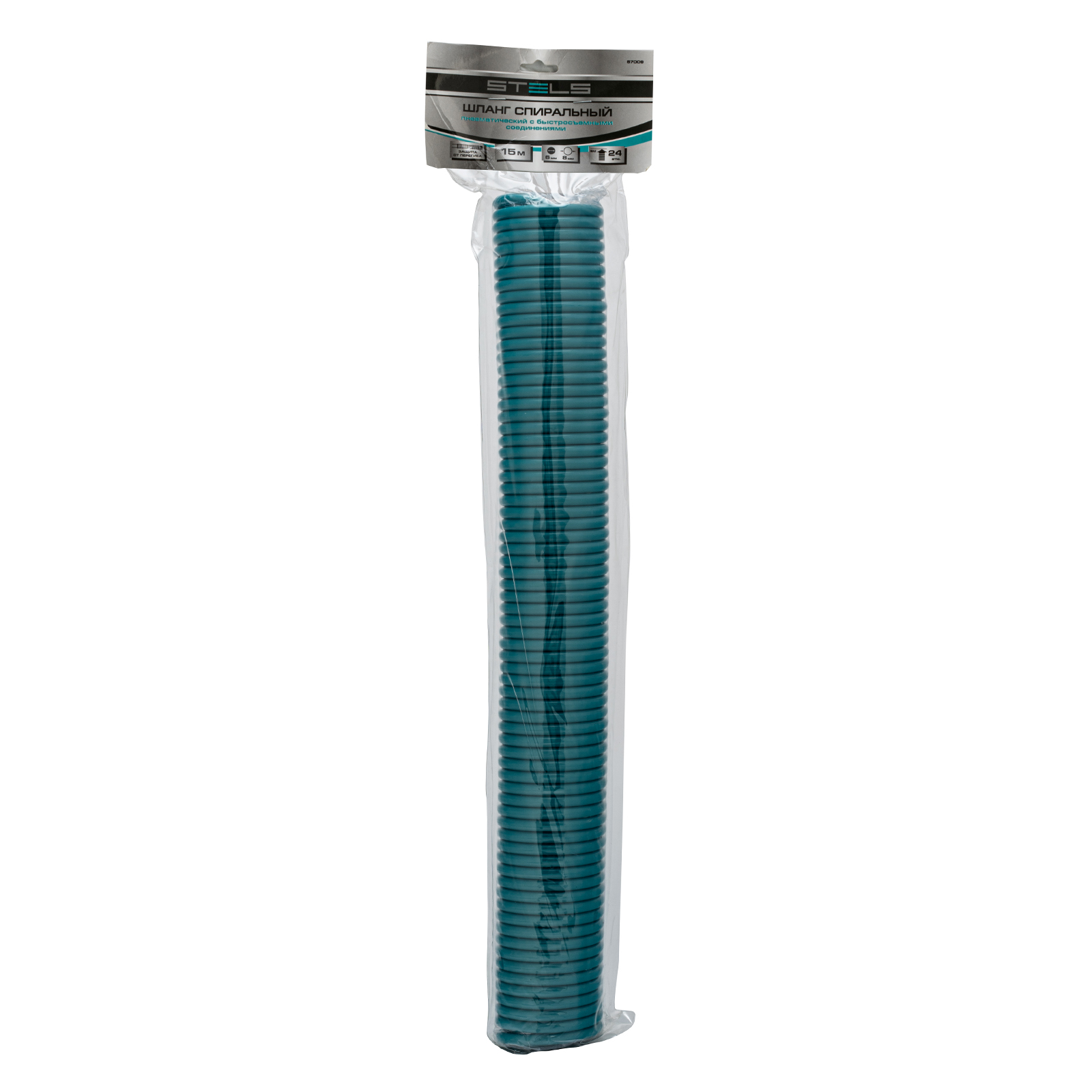 Профессиональный полиуретановый спиральный шланг Stels 57009 из сырья BASF, длиной 15 м, с быстросъемными соединениями, предназначен для подключения пневматического оборудования. Благодаря увеличенной толщине рукав выдерживает давление до 24 бар, поэтому подходит для мощного компрессорного оборудования. Используется в строительстве и на производственных предприятиях.