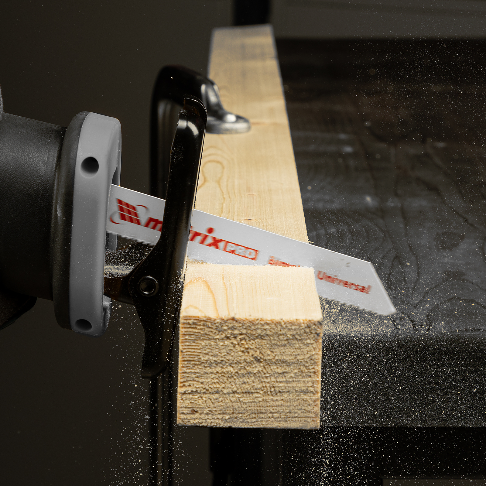 Универсальные полотна для сабельной пилы S922VF Matrix PRO 782001 с переменным шагом зубьев 1,8-2,5 мм, биметаллические (Bimetal), 2 шт. в упаковке, имеют рабочую длину 125 мм и позволяют быстро и качественно распиливать заготовки из древесины, пластика, листового металла, фанеры, ДСП, справляются также с алюминиевыми профилями и древесиной с гвоздями. В зависимости от материала глубина распила составляет от 3 до 100 мм. Полотна пригодятся на строительной площадке, во время ремонта, демонтажа различных конструкций, будут полезны дома и на даче.