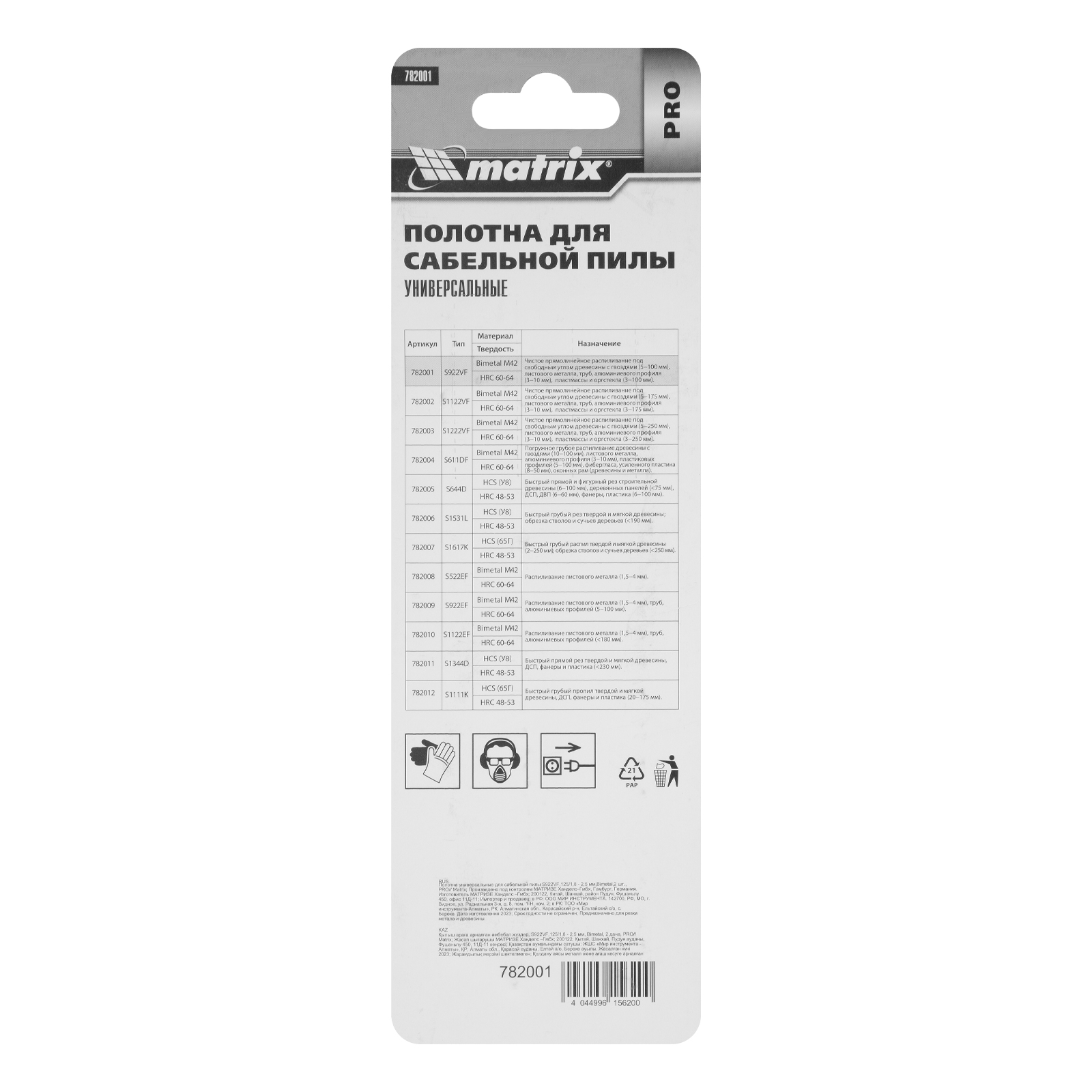 Полотна универсальные для сабельной пилы S922VF, 125/1.8-2.5 мм, Bimetal, 2 шт, Pro Matrix