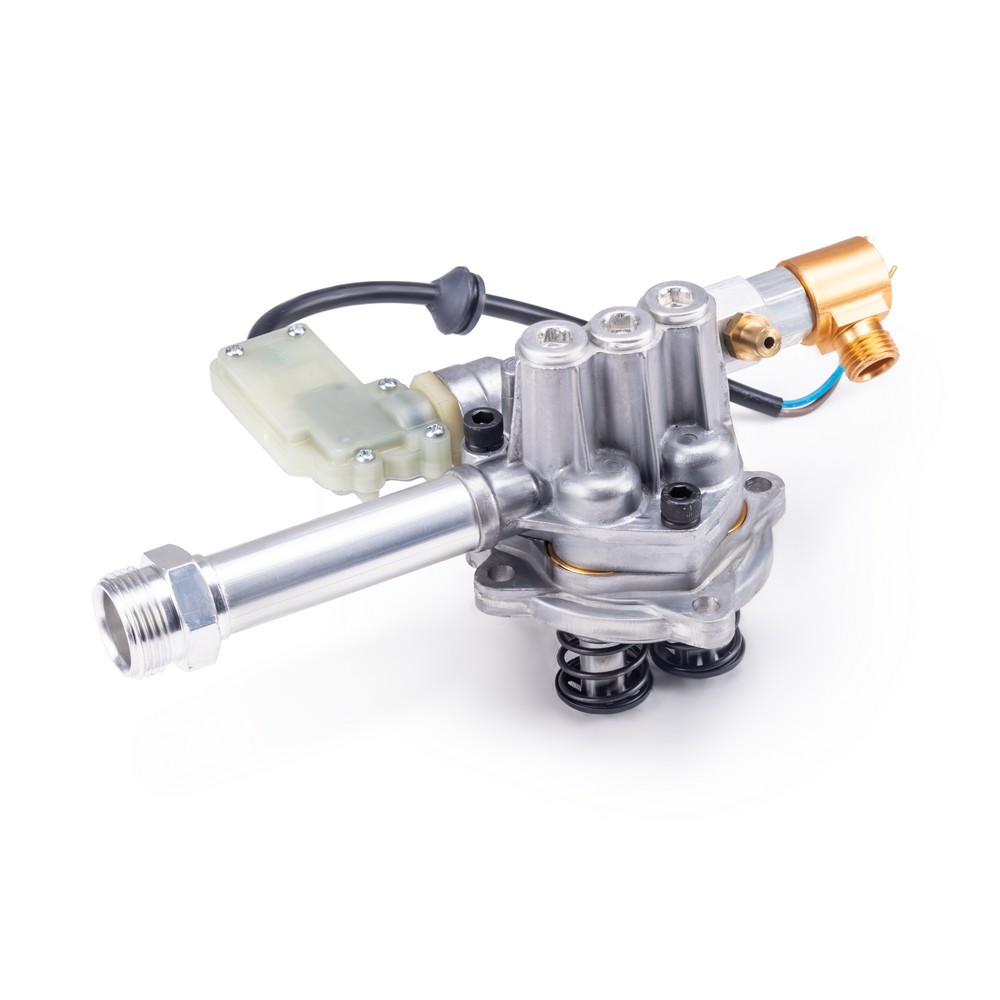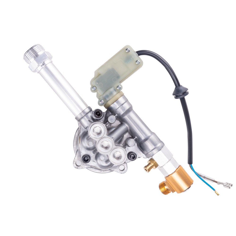Помпа высокого давления для моек KVAZARRUS K5 Standart, K5 Expert  является ключевым рабочим узлом мойки высокого давления и отвечает за нагнетание потока воды под высоким давлением за счет обратно-поступательного движения трех поршней осуществляемого с помощью аксиального приводного механизма косой шайбы. Корпус помпы изготовлен из высококачественного алюминия, а ее напорный патрубок из латуни, что гарантирует дополнительную надежность и устойчивость к окислению. Помпа отличается высокими основными рабочими параметрами по давлению и производительности. Напорный патрубок из латуни имеет встроенный инжектор для подсоса моющего средства в режиме низкого давления. Также имеется система "AUTOSTOP" которая представляет собой интегрированный манометрический выключатель моментально отключающий электродвигатель при достижении максимального давления в системе после отпускания клавиши на пистолете, благодаря чему исключается его холостой ход, что обеспечивает экономию потребляемой электроэнергии и минимизирует нагрев электродвигателя, а также снижает износ уплотнительных элементов помпы, что способствует увеличению рабочего ресурса аппарата.