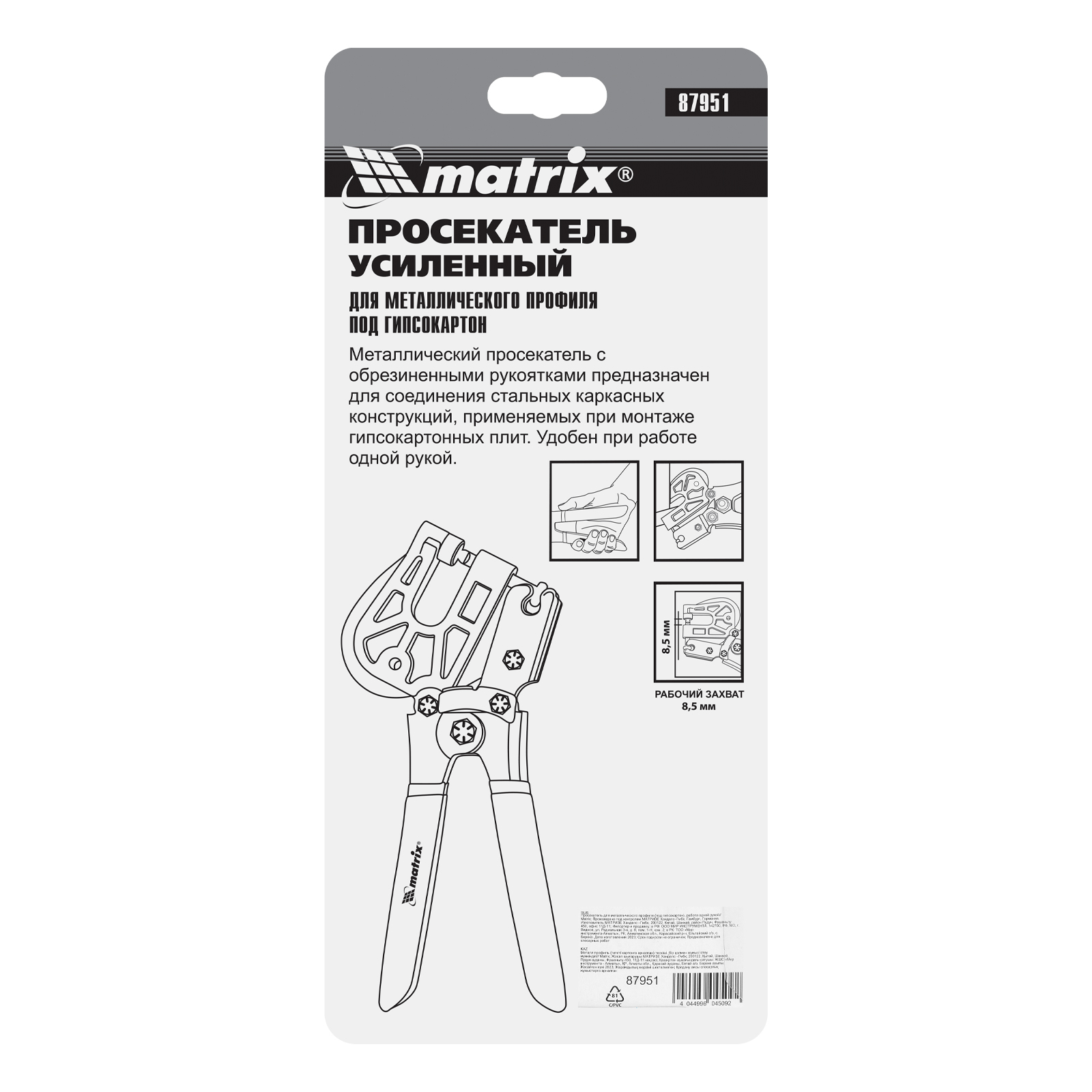 Просекатель для металлического профиля, под гипсокартон, работа одной рукой Matrix