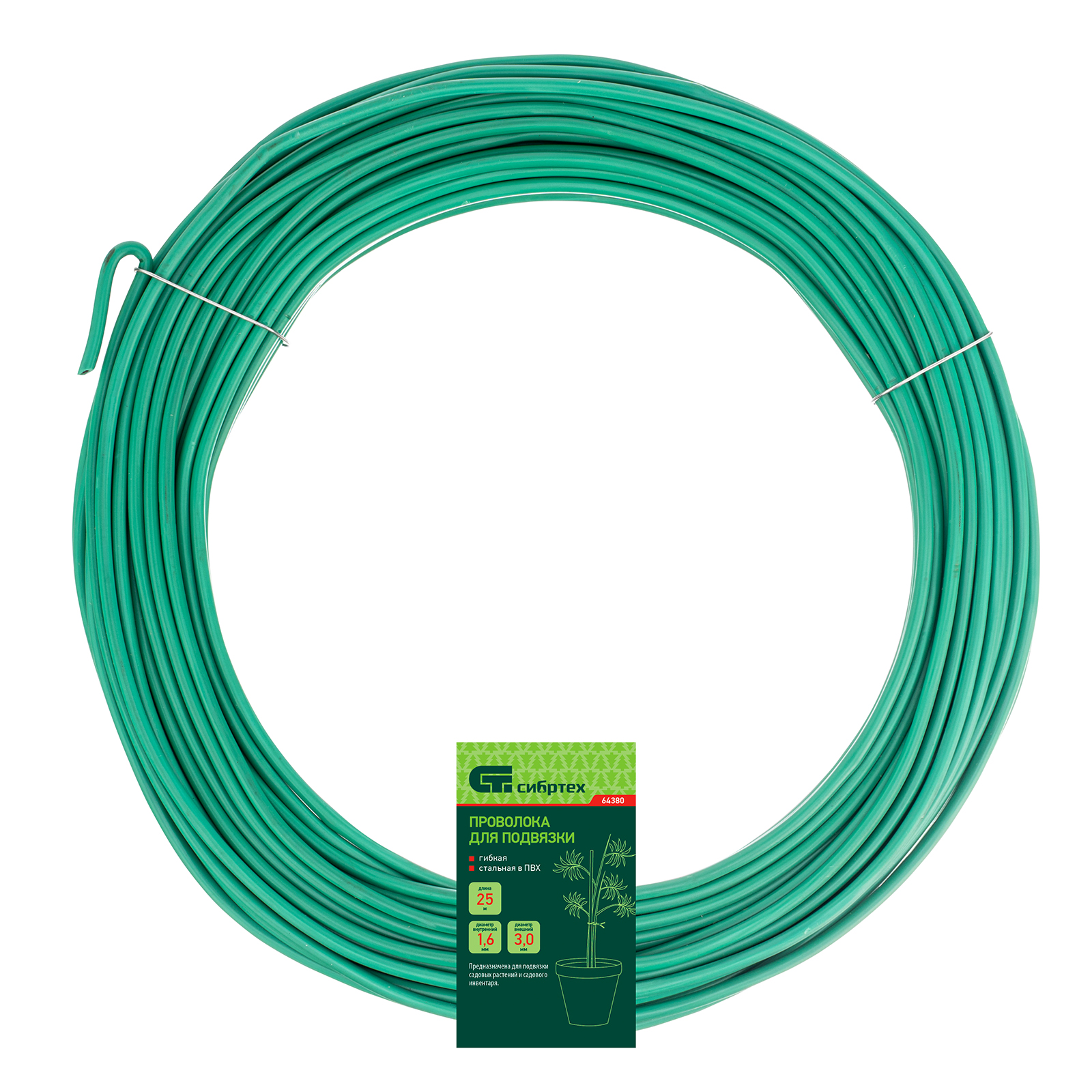 Зеленая проволока для подвязки Сибртех 64380, стальная в ПВХ, с внутренним и внешним диаметром 1,6 и 3,0 мм соответственно, будет полезна в дачном хозяйстве. Ею удобно подвязывать растения или создавать шпалерные системы. Изделие оптимально подходит для удерживания тяжелых стеблей.
