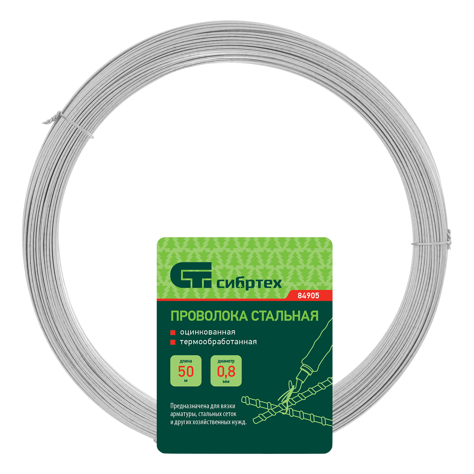 Проволока стальная 50 м, оцинкованная, термообработанная 0.8 мм Сибртех в Санкт-Петербурге