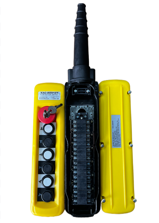 Пульт управления XAC-A6913Y для тали (6 кнопок, 2 скорости, ключ-марка, стоп, IP65, 380В) в Санкт-Петербурге