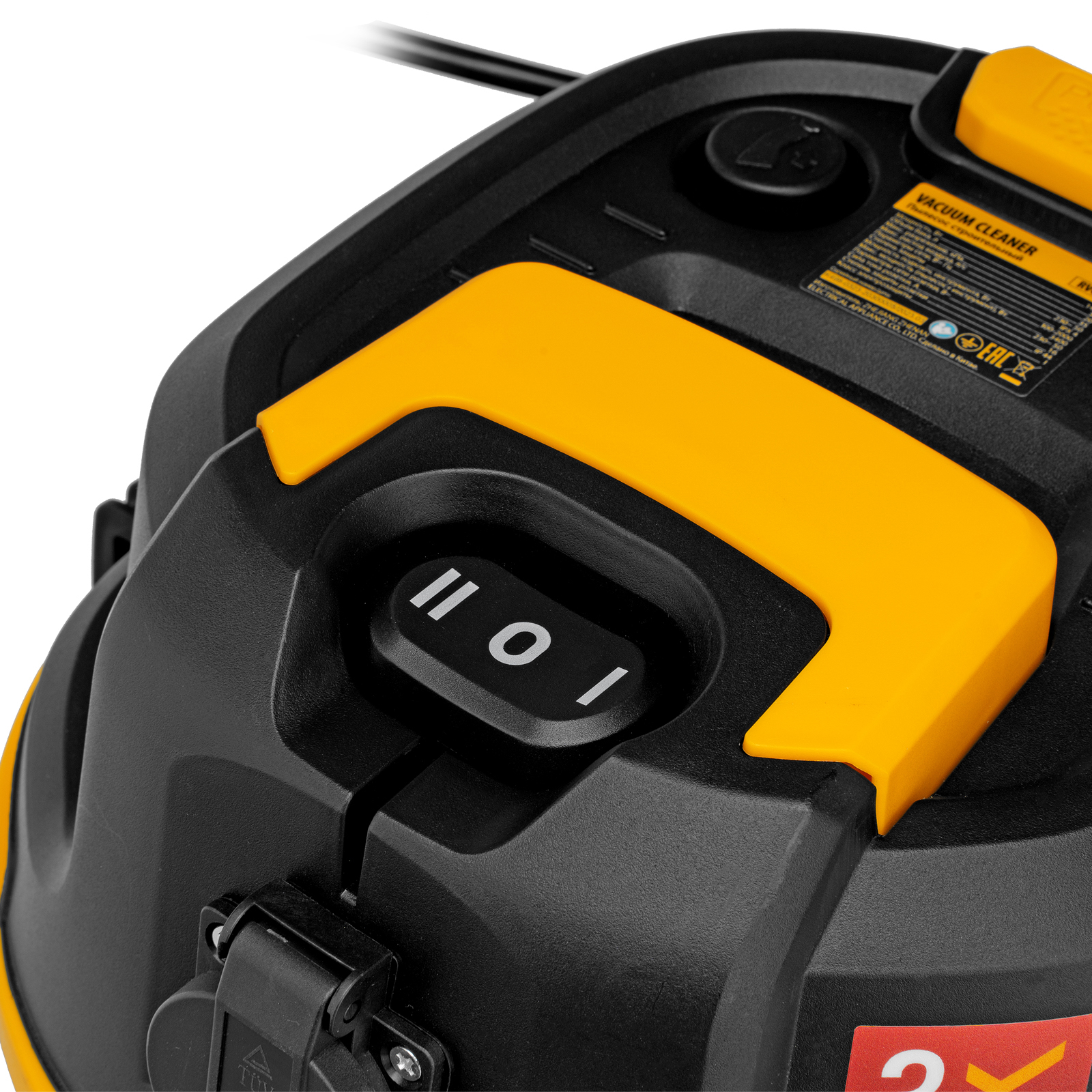 Пылесос строительный RVC30, 1400 Вт, бак 30 л, шланг 3 м, розетка с автосинхр. Denzel