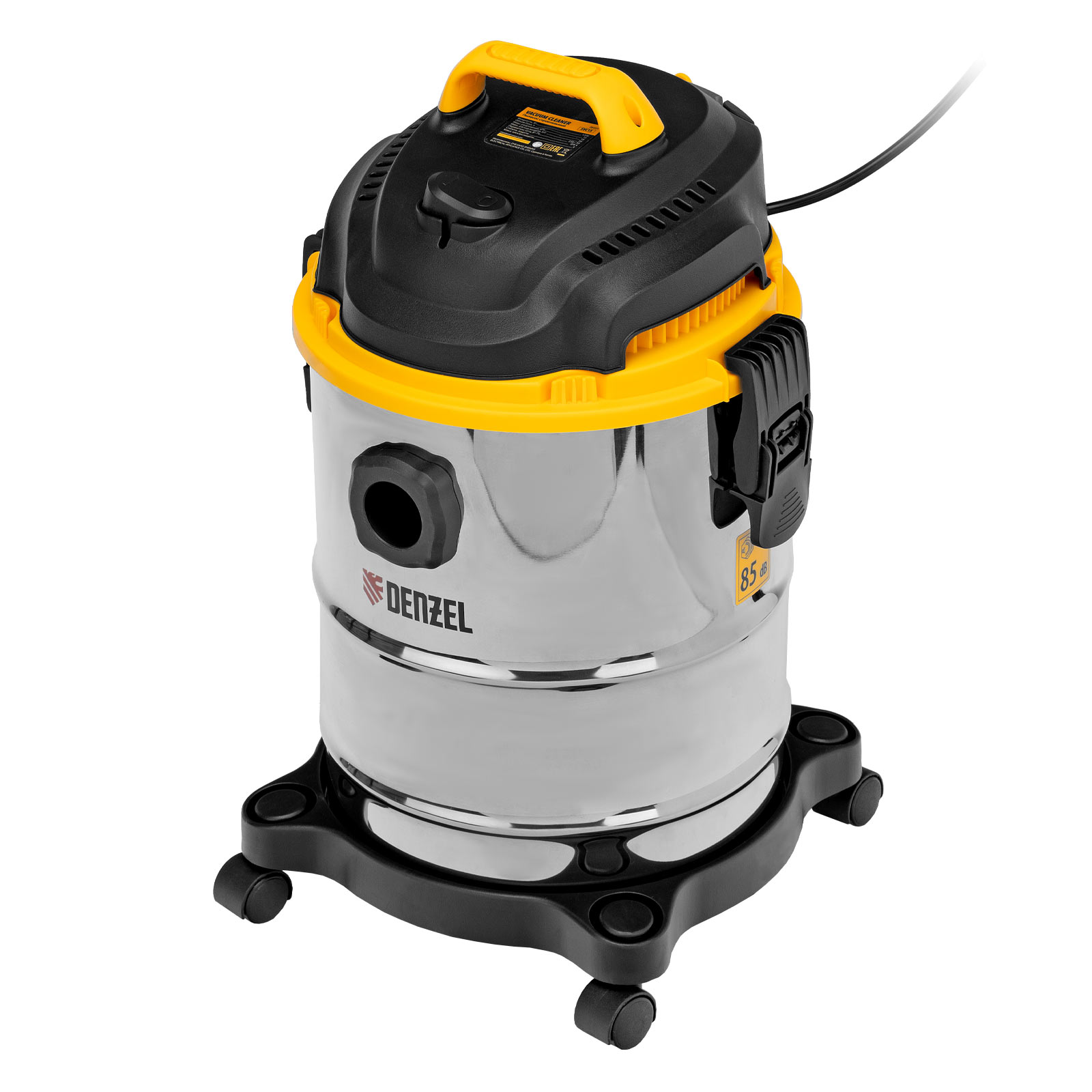 Пылесос строительный Denzel SVC15 28201 мощностью 1200 Вт, с баком объемом 15 л и шлангом длиной 2 м, предназначен для уборки бетонной, кирпичной пыли, опилок, стружки, также предусмотрена функция сбора воды. Пылесос используется во время проведения строительных и ремонтных работ, будет полезен для поддержания чистоты в мастерской, гараже, производственном помещении.