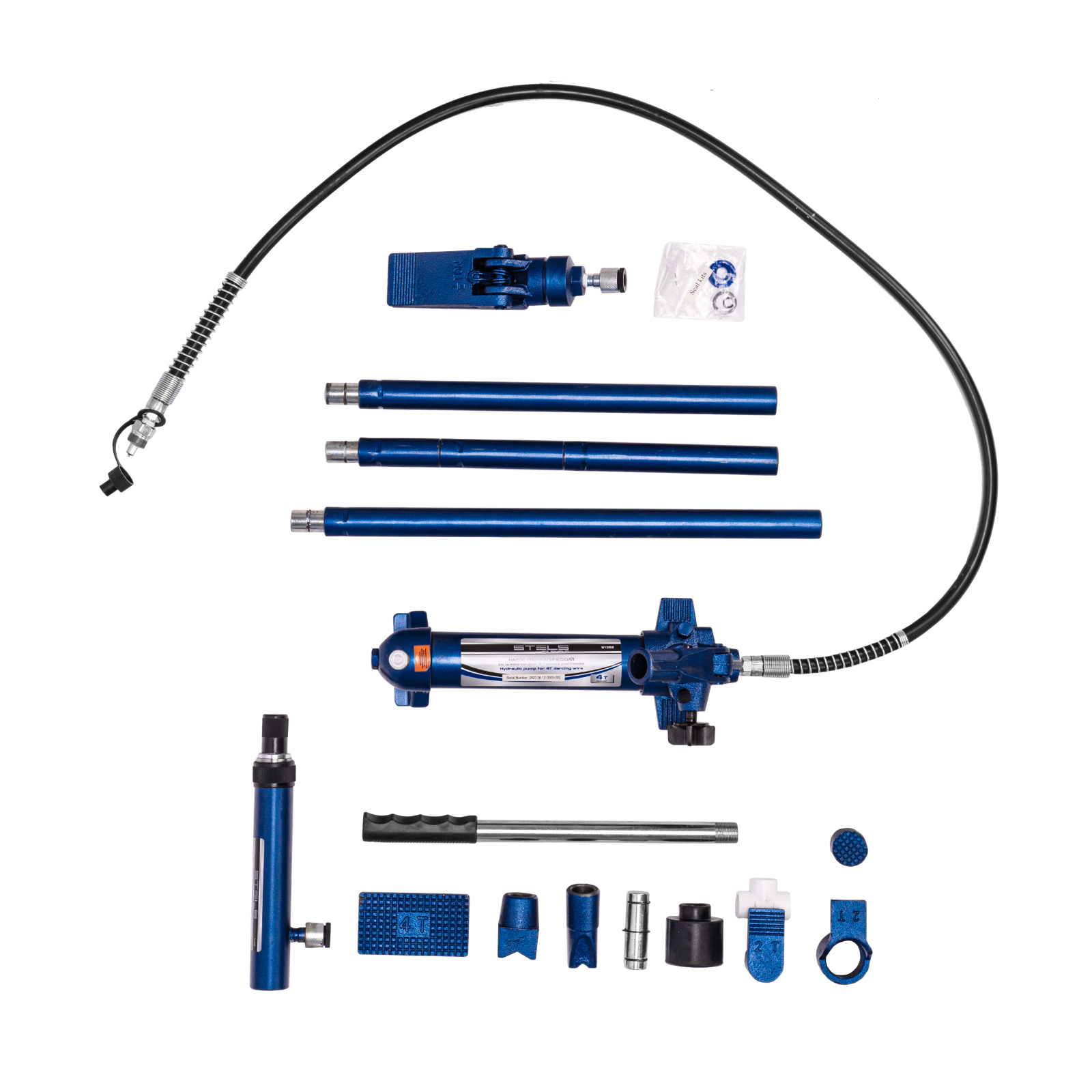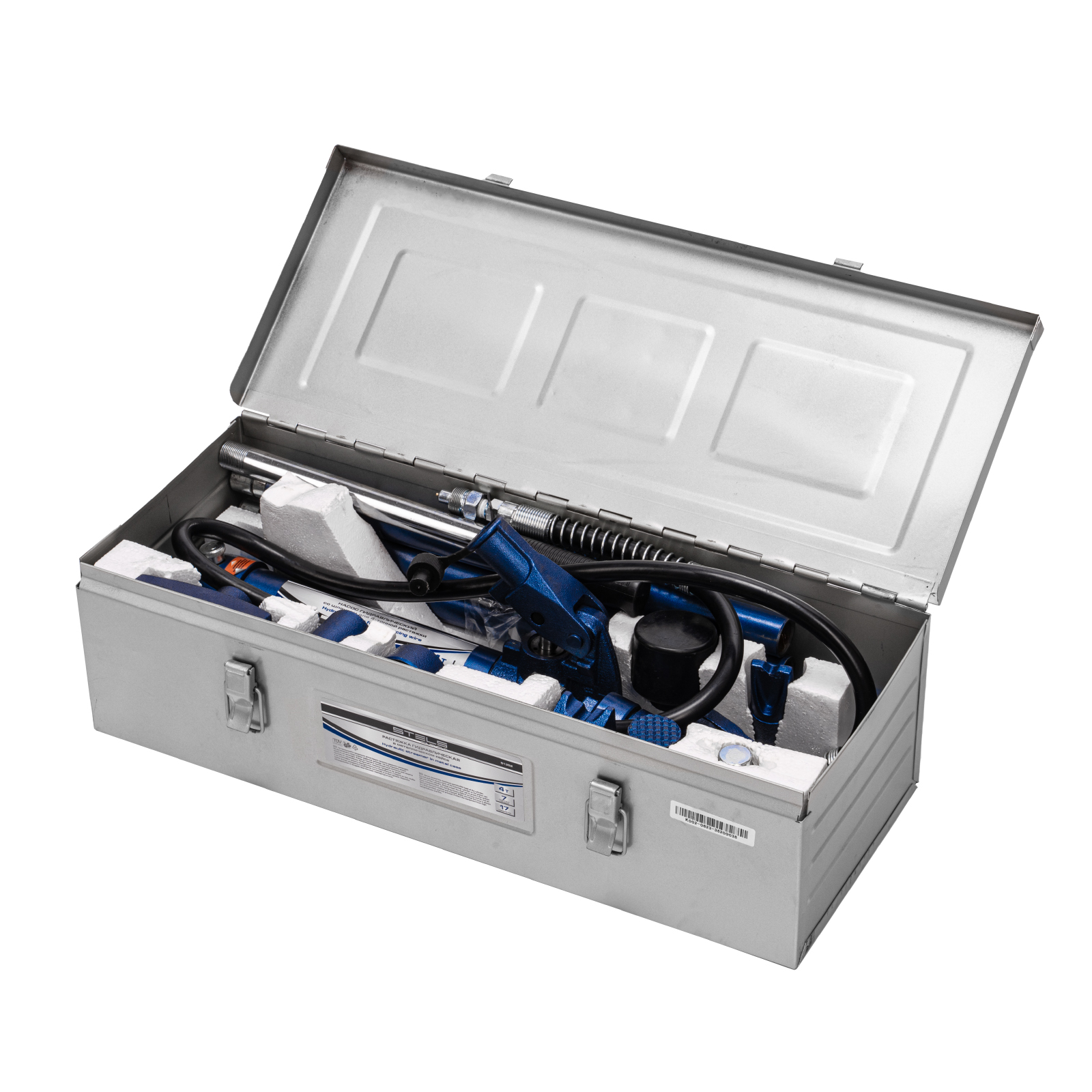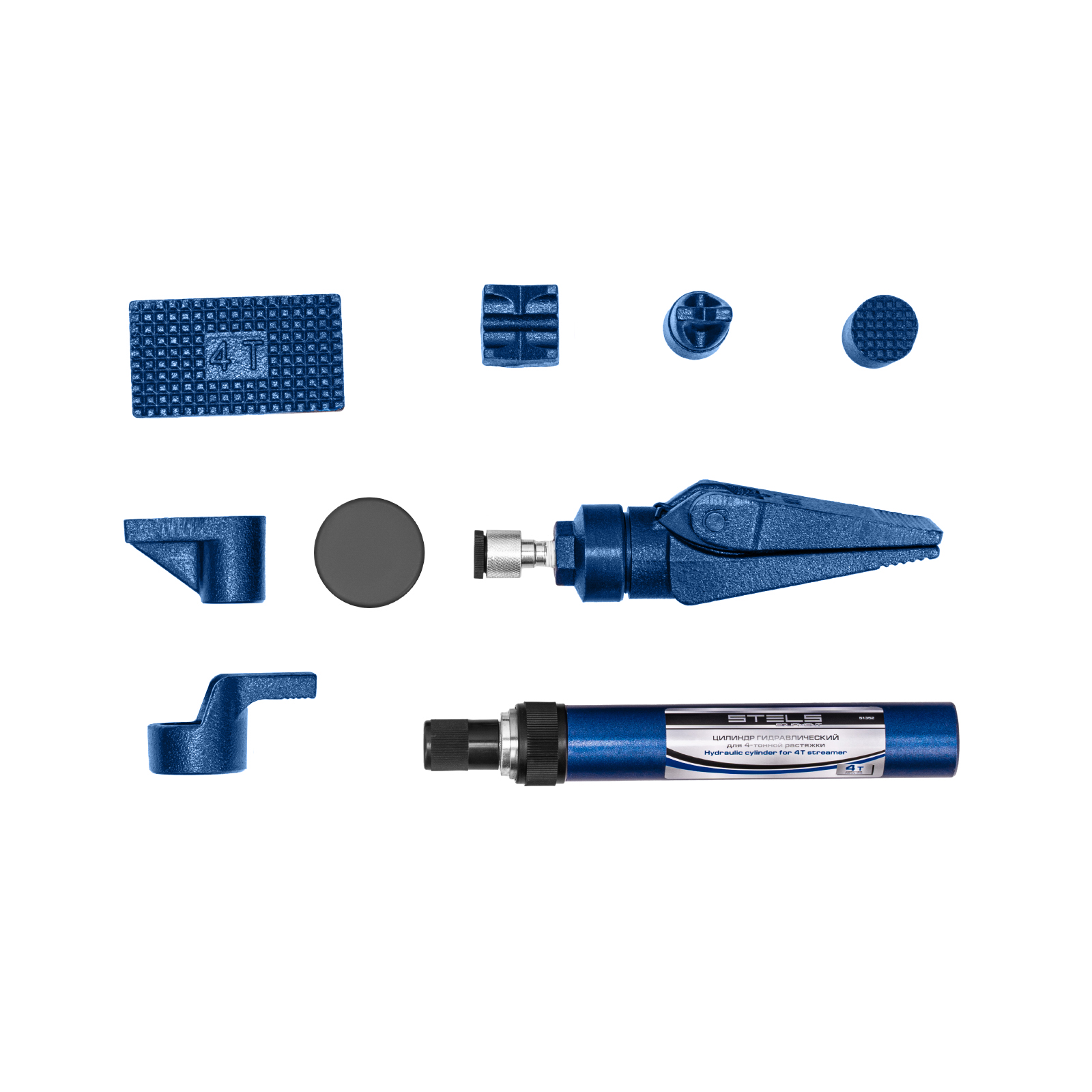 Растяжка гидравлическая, 4 т, набор из 17 предметов, 7 сменных насадок, в металлическом кейсе Stels