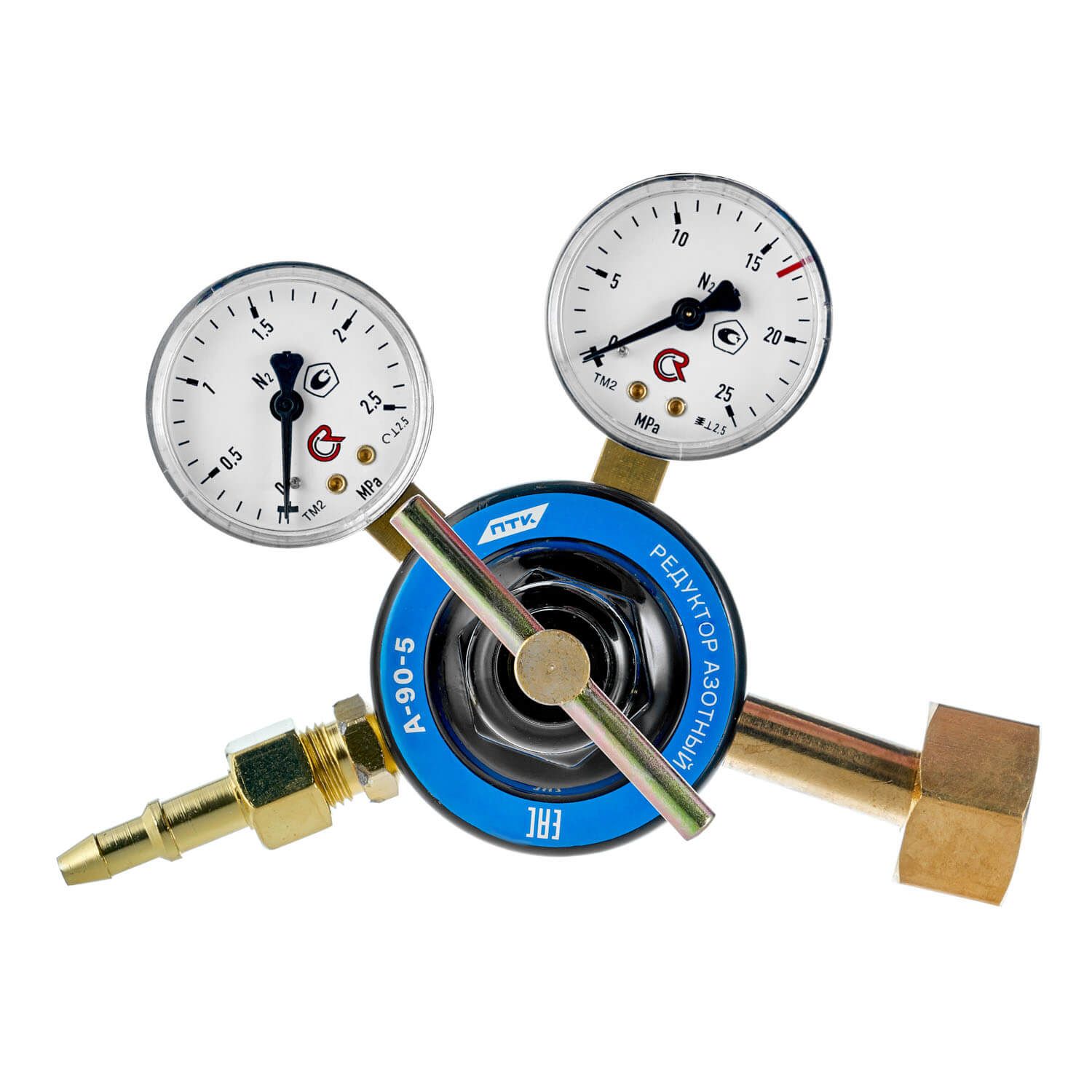Редуктор азотный А-90-5 предназначен для понижения давления газа, поступающего из баллона, и автоматического поддержания постоянным заданного рабочего давления при газопламенной обработке. Производит тонкую настройку рабочего давления. Срабатывание предохранительного клапана происходит при давлении в 1,6 МПа.