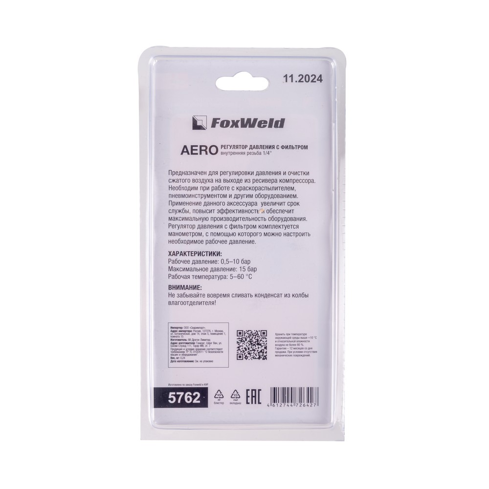 Регулятор давления AERO с манометром и фильтром-осушителем 1/4 F в Санкт-Петербурге