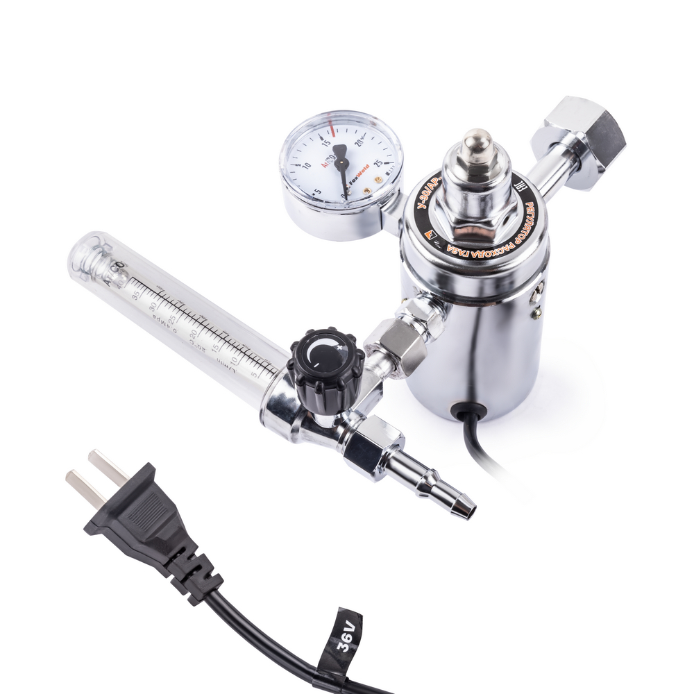 Регулятор расхода газа У-30/АР-40-1P-36В с подогревателем на 36 Вольт используется для понижения и выравнивания давления на выходе из баллона до рабочего уровня, регулировки расхода газа и поддержания заданного уровня на протяжении проведения работ. Нагреватель газа нужен для предотвращения замерзания механизмов регулятора при больших расходах газа или при низких температурах окружающей среды. Корпус выполнен из латуни и покрыт никелем - материал прочен и не дает искр. Входное давление отражено на манометре высокого давления, а регулировка осуществляется с помощью вентиля, характеристики расхода показывает ротаметр на выходе. Регулятор расхода газа необходим при выполнении работ с газовым оборудованием, при проведении сварочных работ, резке и пайке металлов, газовом напылении.БЕЗОПАСНОСТЬ РАБОЧЕГО ПРОЦЕССА: Корпус из латуни обеспечивает безопасность в работе. Материал прочен и не дает искр при использовании. Надежное крепление не допускает протечки газа во внешнюю среду.ВЫСОКАЯ ЭФФЕКТИВНОСТЬ: Газовый регулятор обеспечивает меньший расход рабочих газов при газосварочном процессе, поддерживает заданный уровень давления до окончания работы и экономит газ в баллоне.ВНЕШНИЕ РЕГУЛИРОВКИ: Регулятор имеет вентиль регулировки подачи газа. Для качественного выполнения газосварочных работ необходимо создать рабочую среду и контролировать расход газа, поступающий из баллона. Вентиль снижает или понижает поступающее давление - можно настроить необходимое рабочее давление на выходе и проконтролировать процесс с помощью манометра.ВСТРОЕННЫЙ МАНОМЕТР: Встроенный манометр давления на входе показывает давление поступающего из баллона газа. С помощью манометра удобно отслеживать уровень давления и задать необходимый объём для работы. Регулировка давления подачи газа осуществляется с помощью наружного вентиля.КОМПЛЕКТАЦИЯ: Регулятор расхода газа У-30/АР-40-1P-36В с подогревателем – 1 шт.; Индивидуальная упаковка – 1 шт.; Инструкция по эксплуатации – 1 шт.*Производитель оставляет за собой право менять комплектацию оборудования.