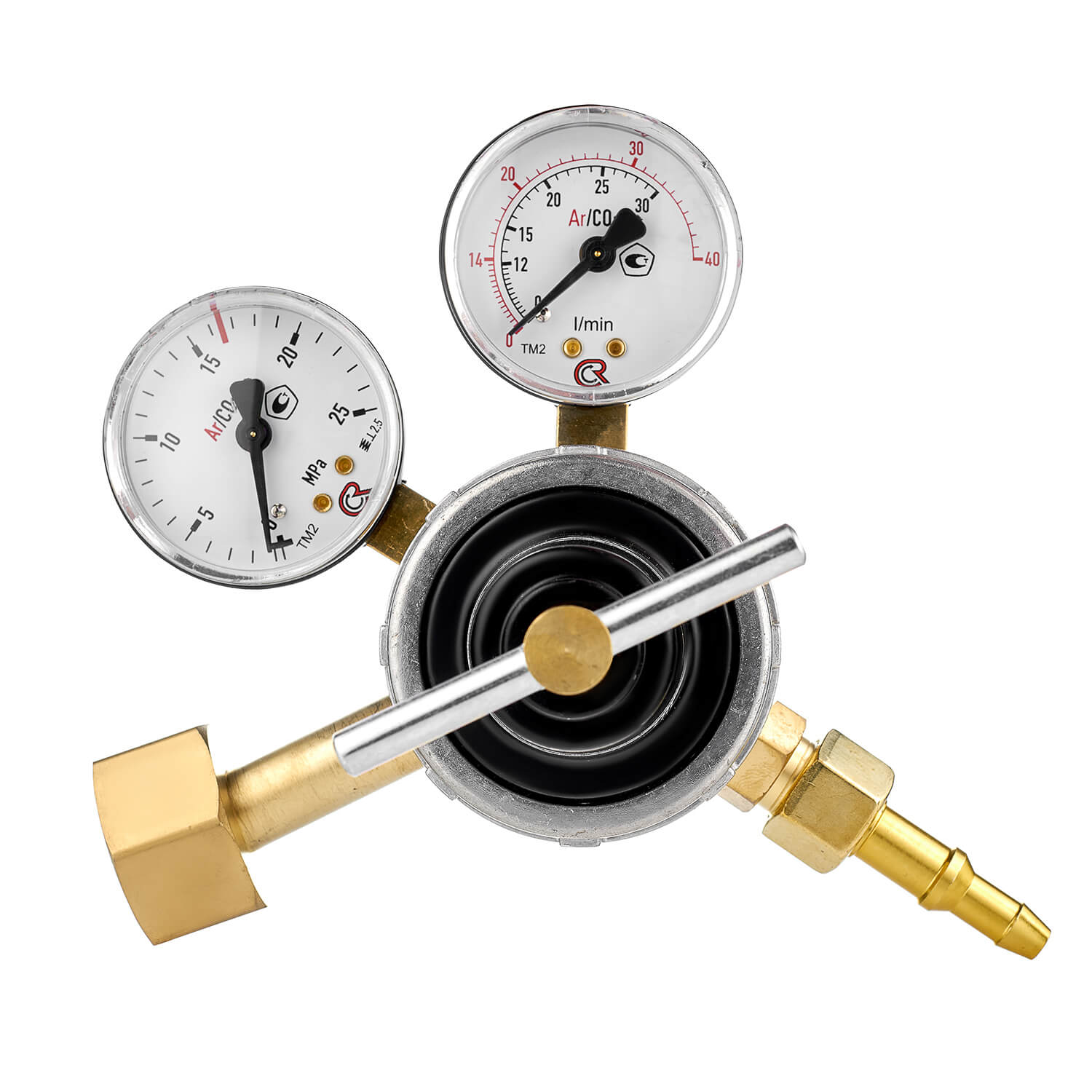 - Черная шкала — расход в л/мин для Углекислоты (CO2).