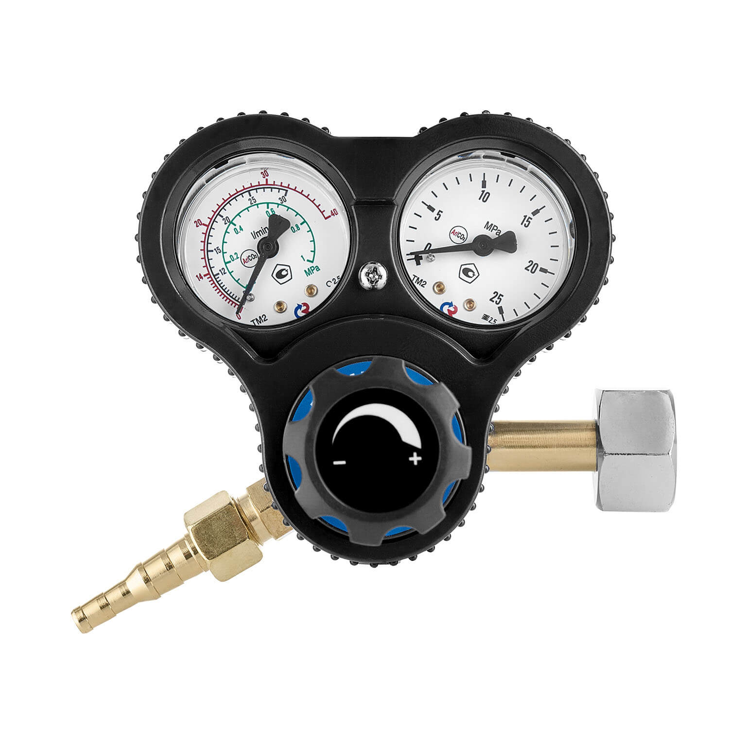 Универсальный регулятор У-30/АР-40-5 АЛ серии PROTEC с манометрами для углекислоты и аргона предназначен для понижения давления газа и автоматического поддержания постоянным заданного расхода при питании постов и установок в среде защитных газов. Срабатывание предохранительного клапана происходит при давлении в 0,6 МПа.