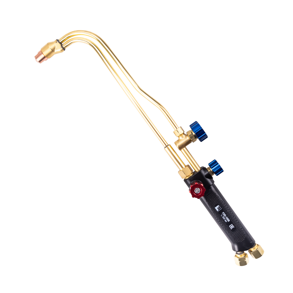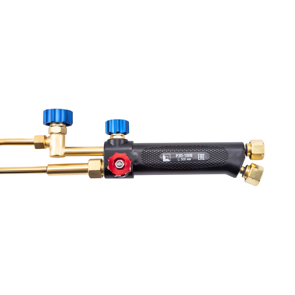 Резак укомплектован ниппелями, что позволяет использовать резинотканевые рукава с внутренним диаметром 6 и 9 мм без дополнительных переходников, накидными гайками (в сборе) M16х1,5 для подачи кислорода и M16х1,5LH для подачи пропана.